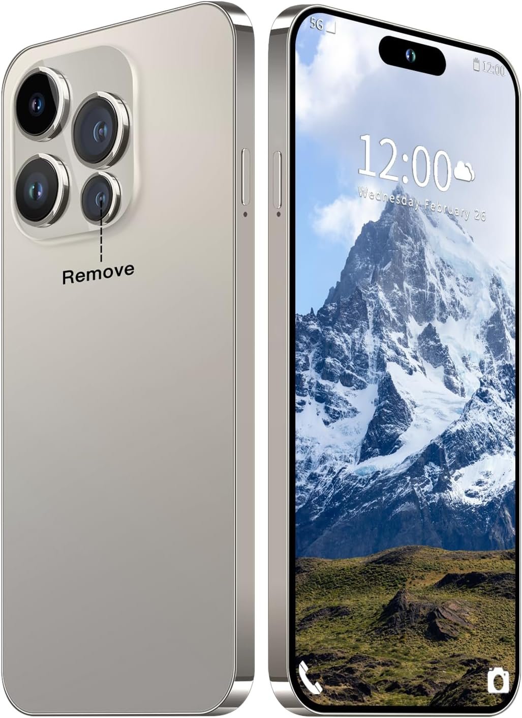 15PROMA X Smartphone Unlocked Cell Phone,Battery 6800mAh 6.8 HD Screen Unlocked Phone,16+512GB Android 14 with 128GB Memory Card,Dual SIM/5G/Fingerprint Lock/Face ID (Natural Titanium, 16+512G)