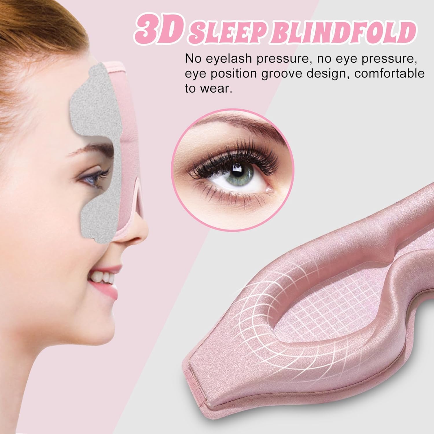 100% blackout effect, deepened groove contour design, no pressure on eyelashes when wearing. This is an ever carefully designed and remodeled lash extension eye sleep mask that allows you to sleep easily while caring for your lashes.