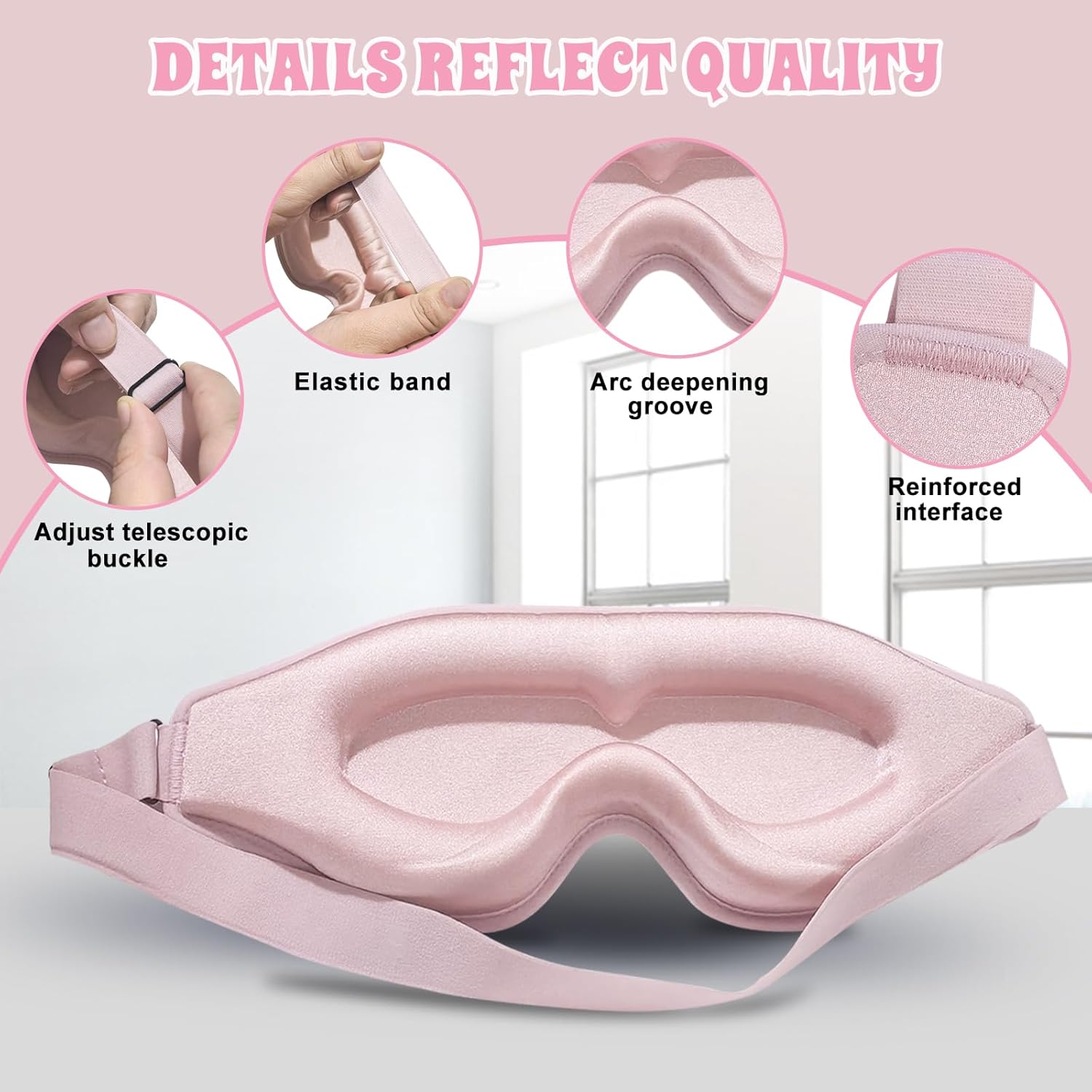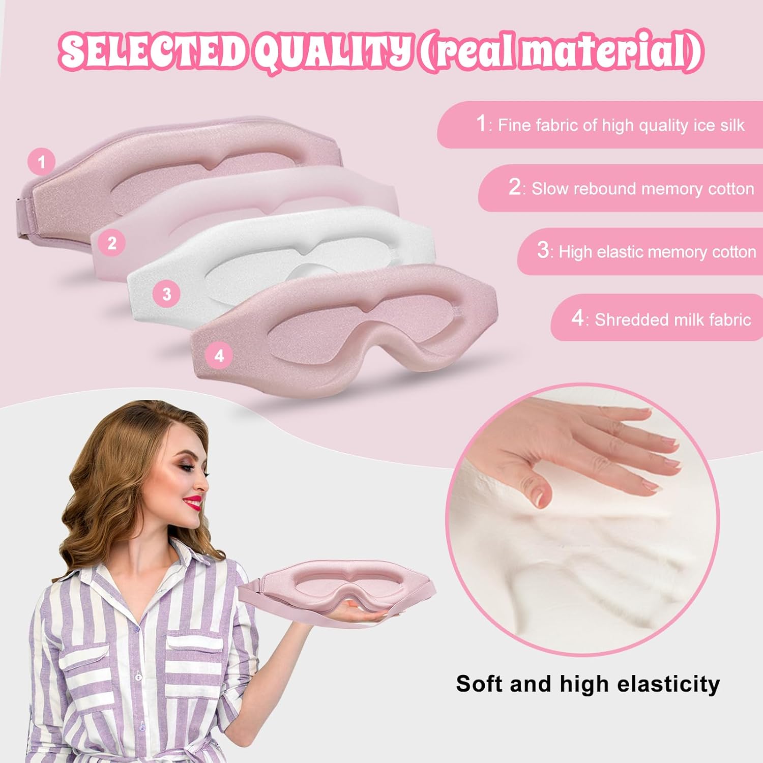 Ultra delicate and high memory sponge elasticity, adjustable strap, 100% blackout eye mask