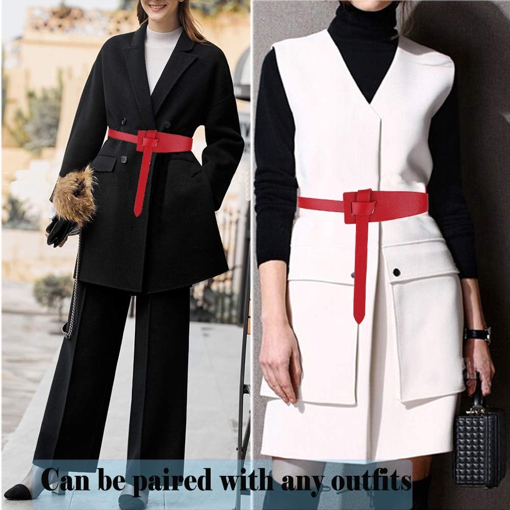 ALAIX Women’s Leather Belt Dress Belt for Jeans Jumpsuit Coat Fashion Tie a Knot Genuine Leather Waist Belt