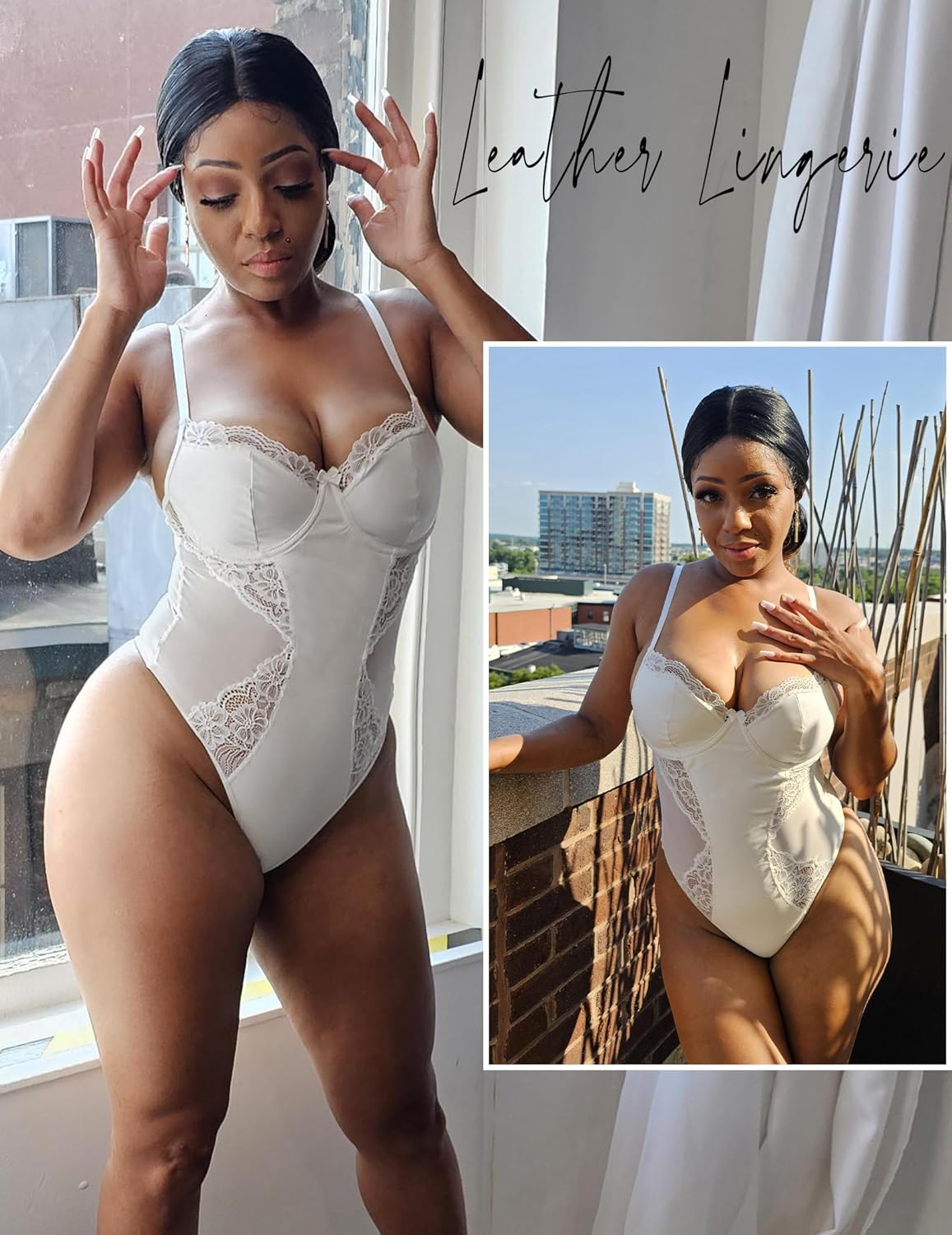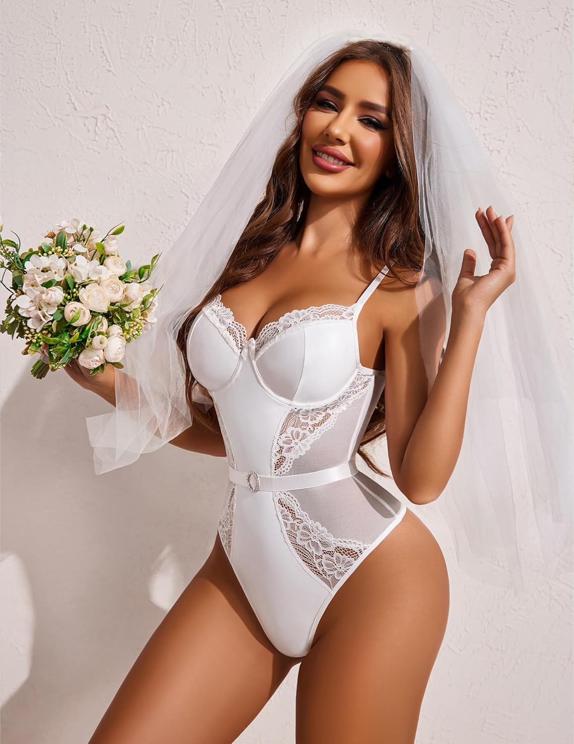 Avidlove Womens Lingerie Lace Bodysuit Push Up Lingerie Snap Crotch Teddy One Piece Babydoll