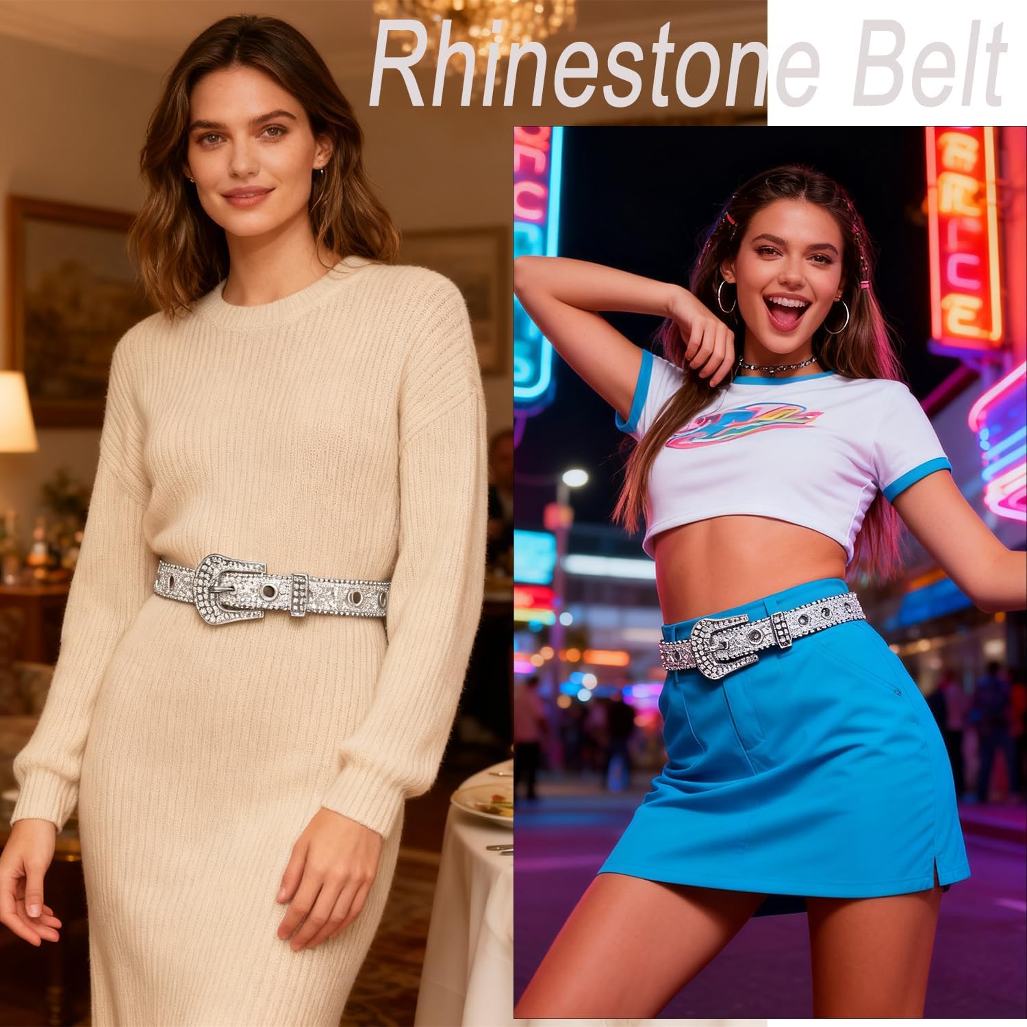 Barry.Wang Rhinestone Belts for Ladies Silver Gold Bling Belt Diamond Crystal Studded for Denims Gown Bridal Christmas