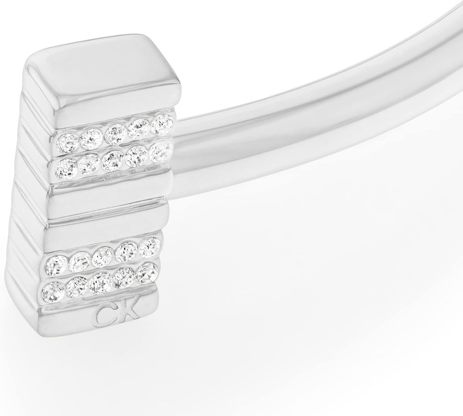 Calvin Klein Ladies’s Stainless Metal and Crystal Reminiscence Metal Bangle: Smooth Glam with Embellished Opening
