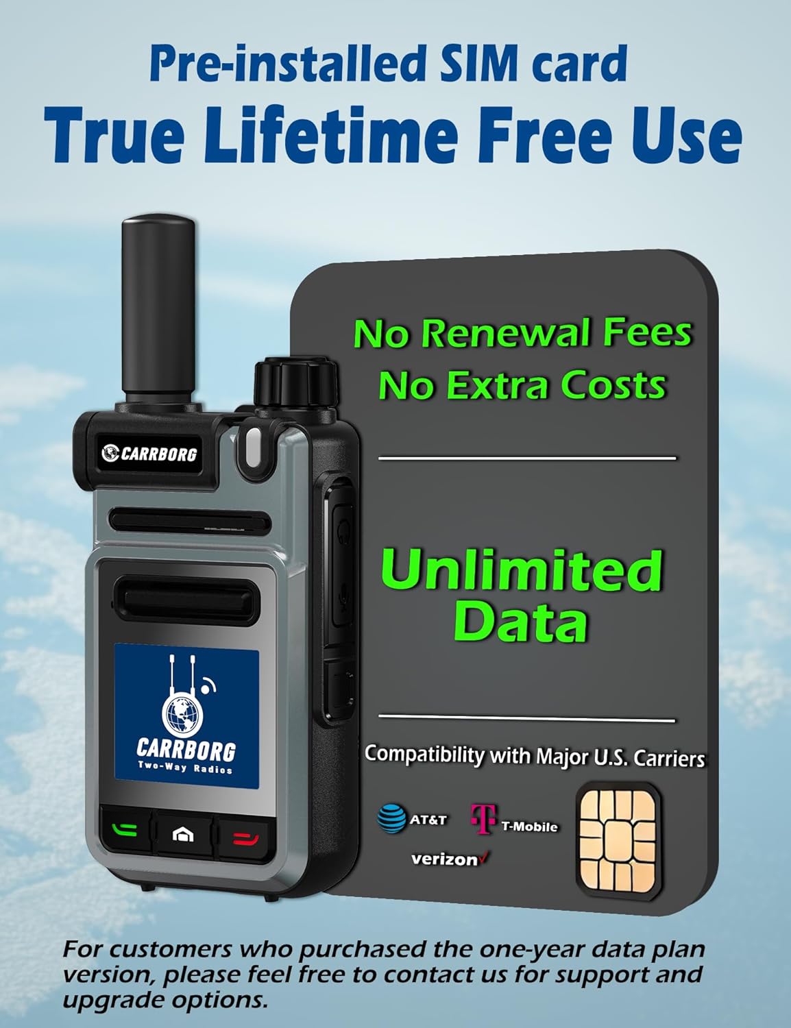 [No Monthly Fees – Ever!]: The device includes an (AT&T, T-Mobile, Verizon) SIM card with LIFETIME FREE data service. Enjoy seamless instant communication wherever (AT&T, T-Mobile, Verizon) signal is available. For customers who purchased the one-year data plan version, please feel free to contact us for support and upgrade options.