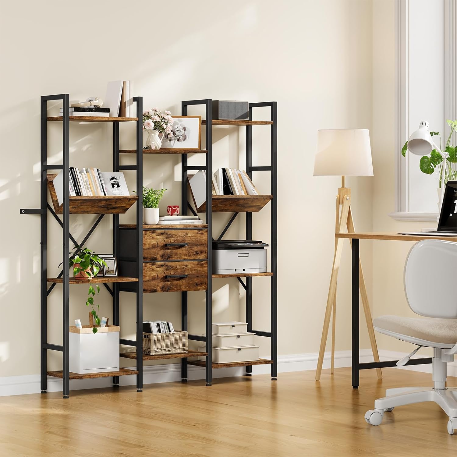 Spacious & Organized Storage: This 55.1″ bookshelf features 9 open shelves and 2 V-shaped racks for storing books and decorative items. Its 2 non-woven fabric drawers are suitable for smaller items, keeping your living space or office tidy