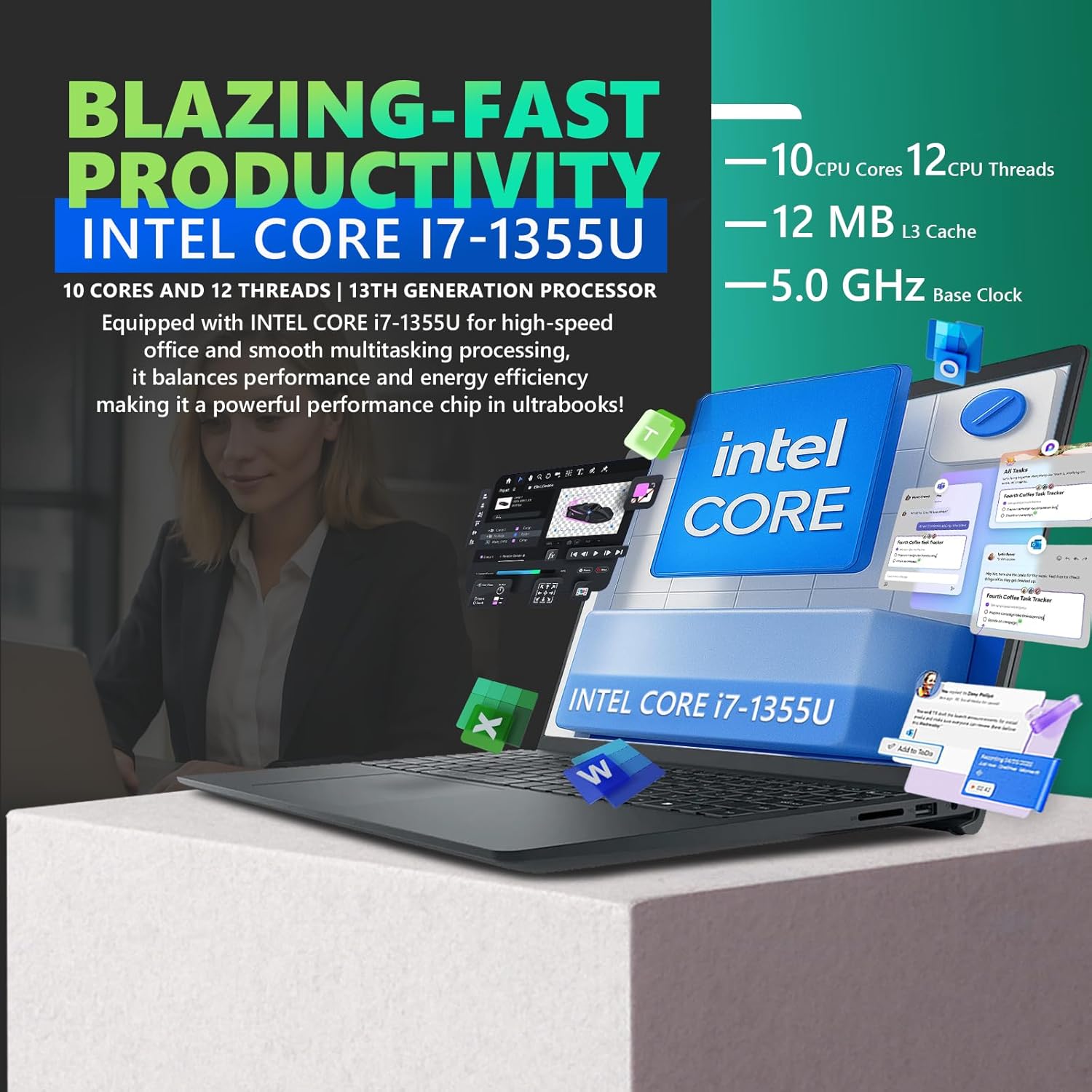 • Processor: Intel 10-Core i7-1355U Processor