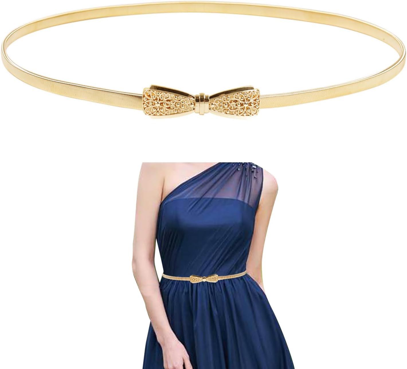 E-Clover Cute Bowknot Metallic Buckle Skinny Stretch Waist Belt For Costume