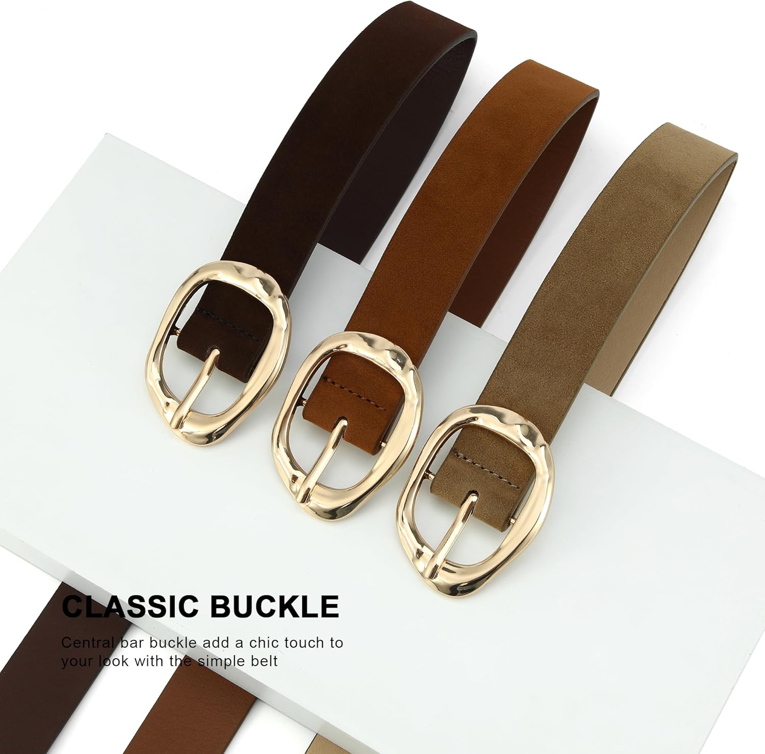 Earnda Leather-based Belts for Girls Informal Style Waist Belt with Liquid Shapes Gold Buckle for Denims Pants Attire