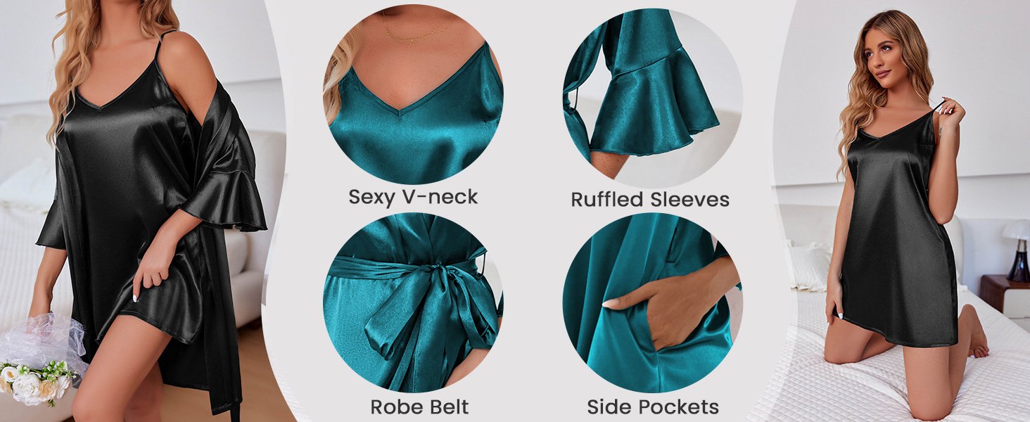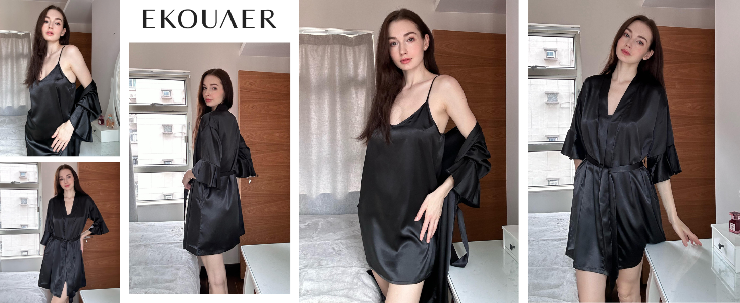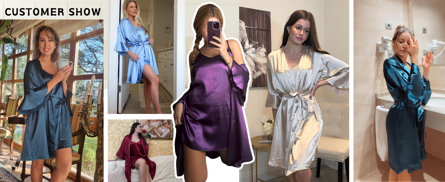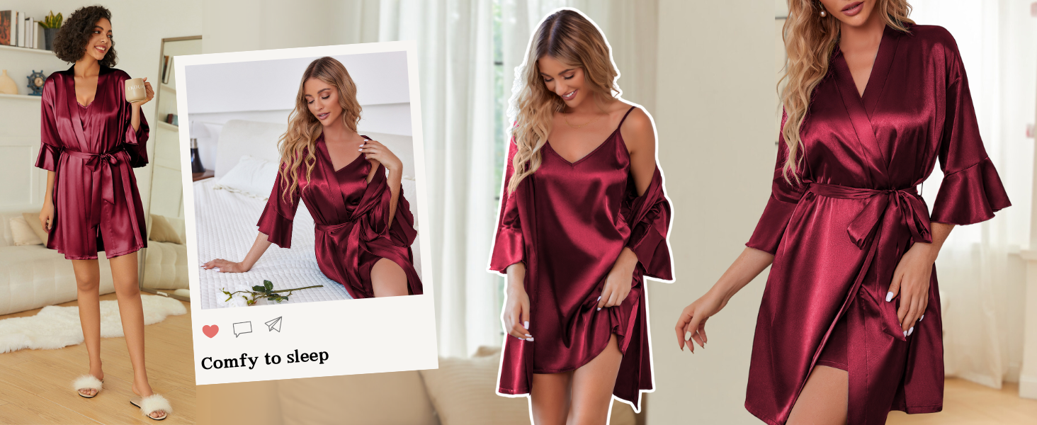 Elegant sleep robe with a luxurious texture and smooth touch. Keep you relaxed and charming.