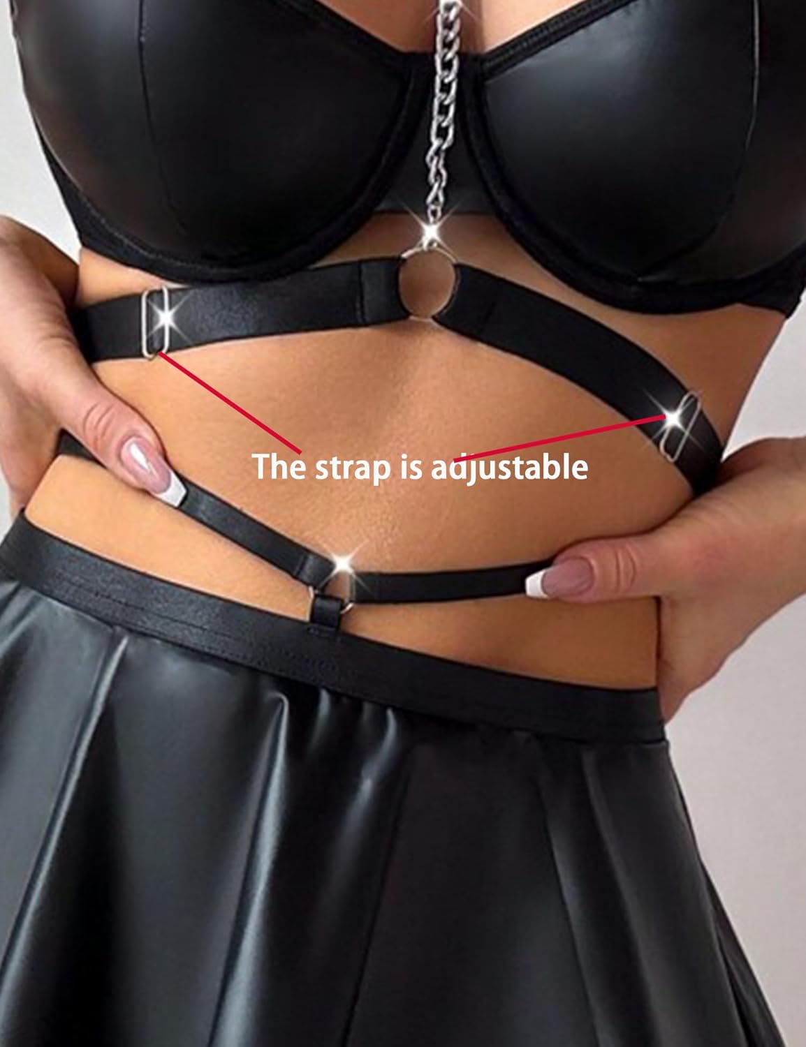 Girls Attractive Leather-based Lingerie Set Choker Chain Mini Lingerie Gown Strappy Bra Skirt Outfits