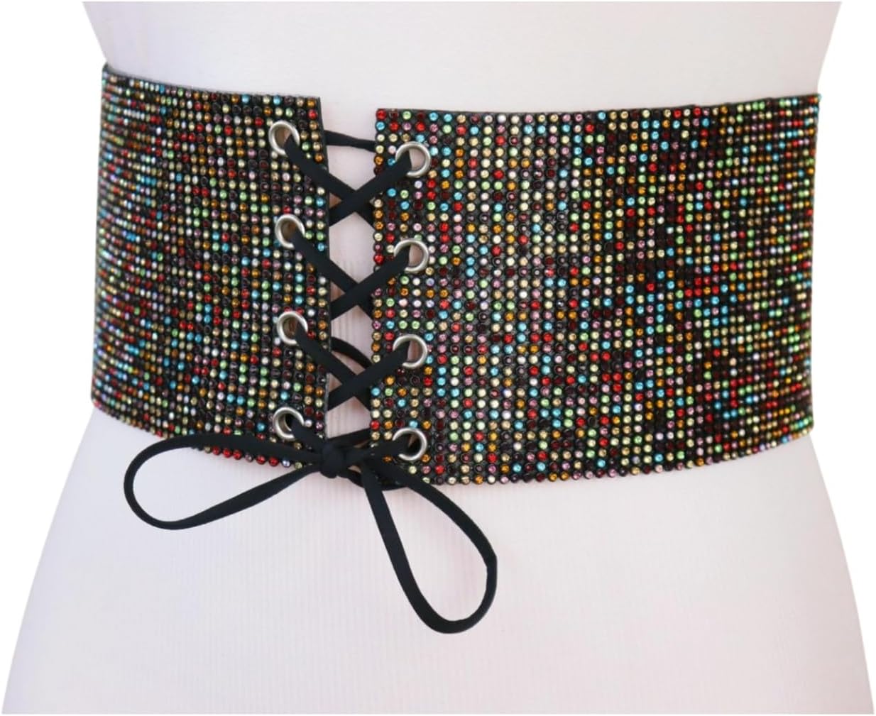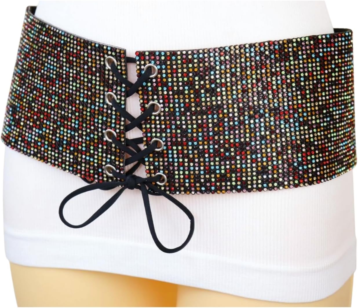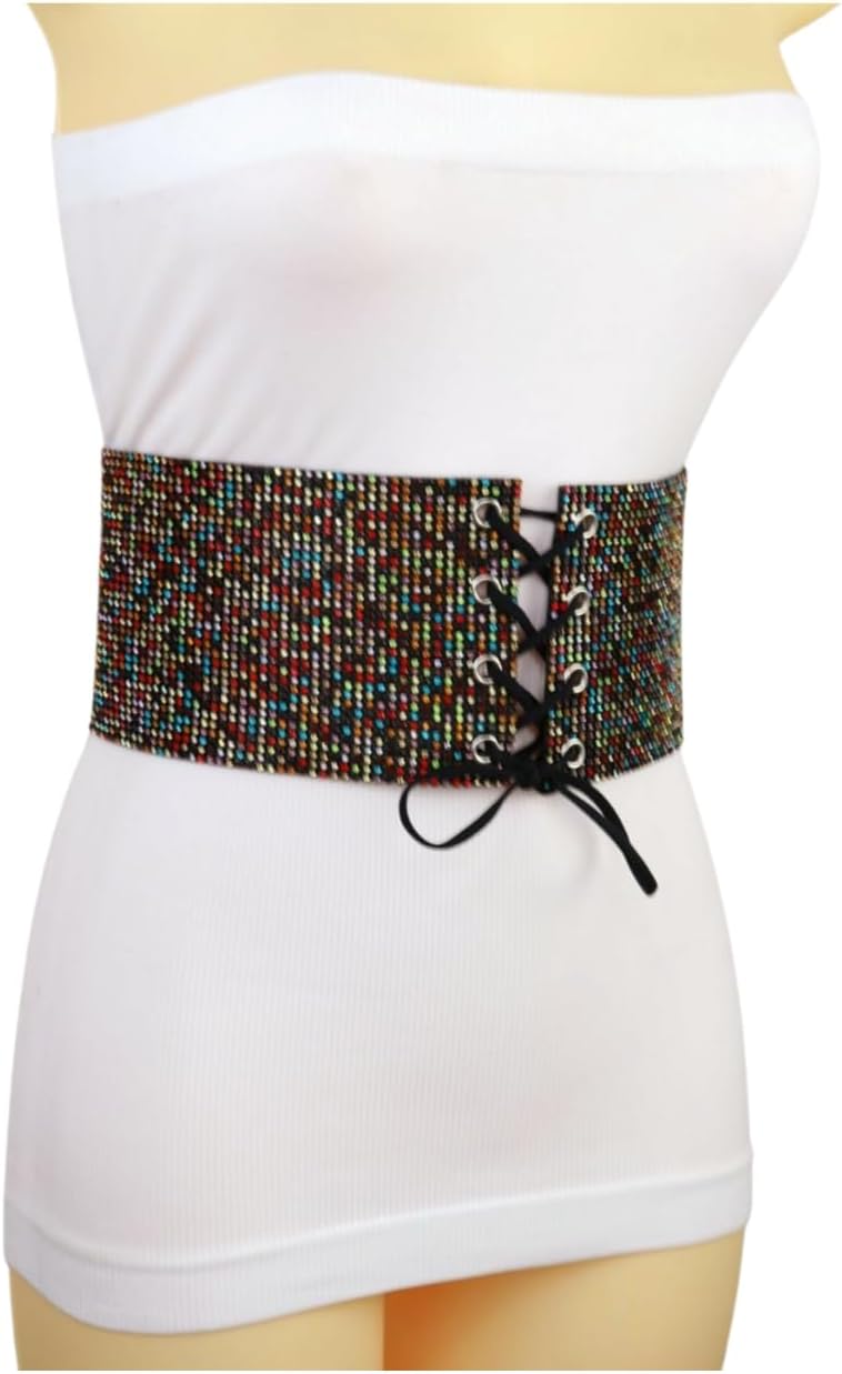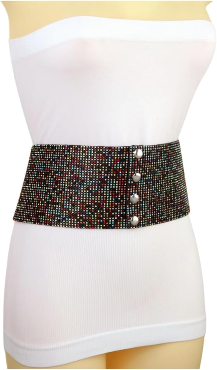 Girls Black Style Belt – Assertion Look Hip Excessive Waist Multicolors Rhinestones Measurement M z301