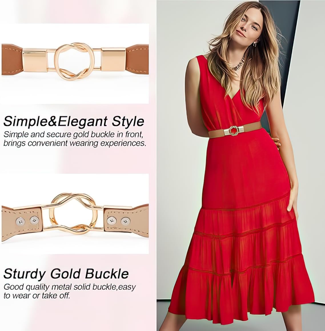Girls Retro Elastic Stretchy Steel Buckle Skinny Waist Belt 1 inch Extensive