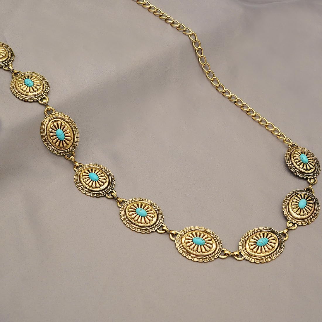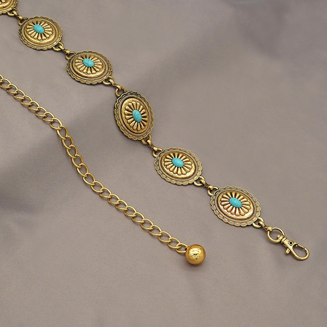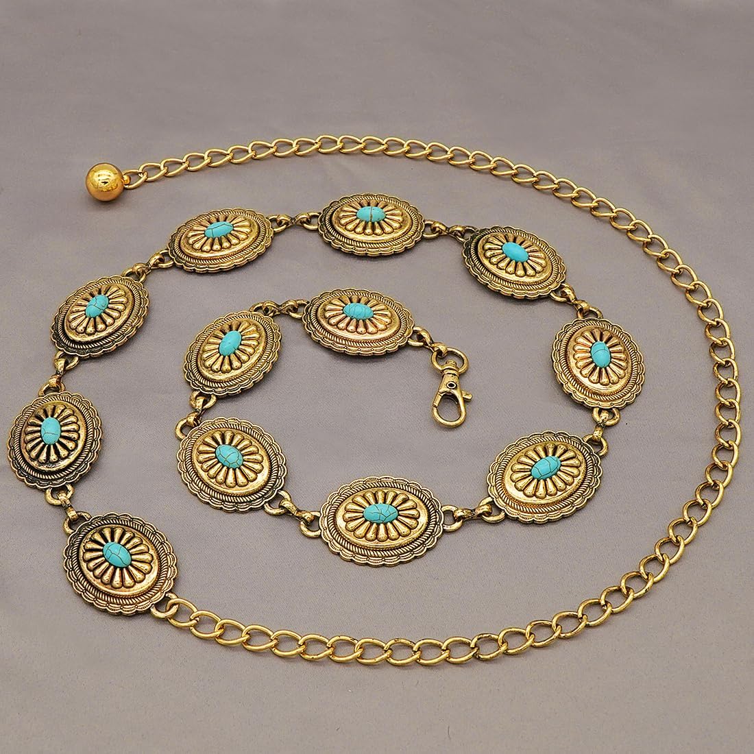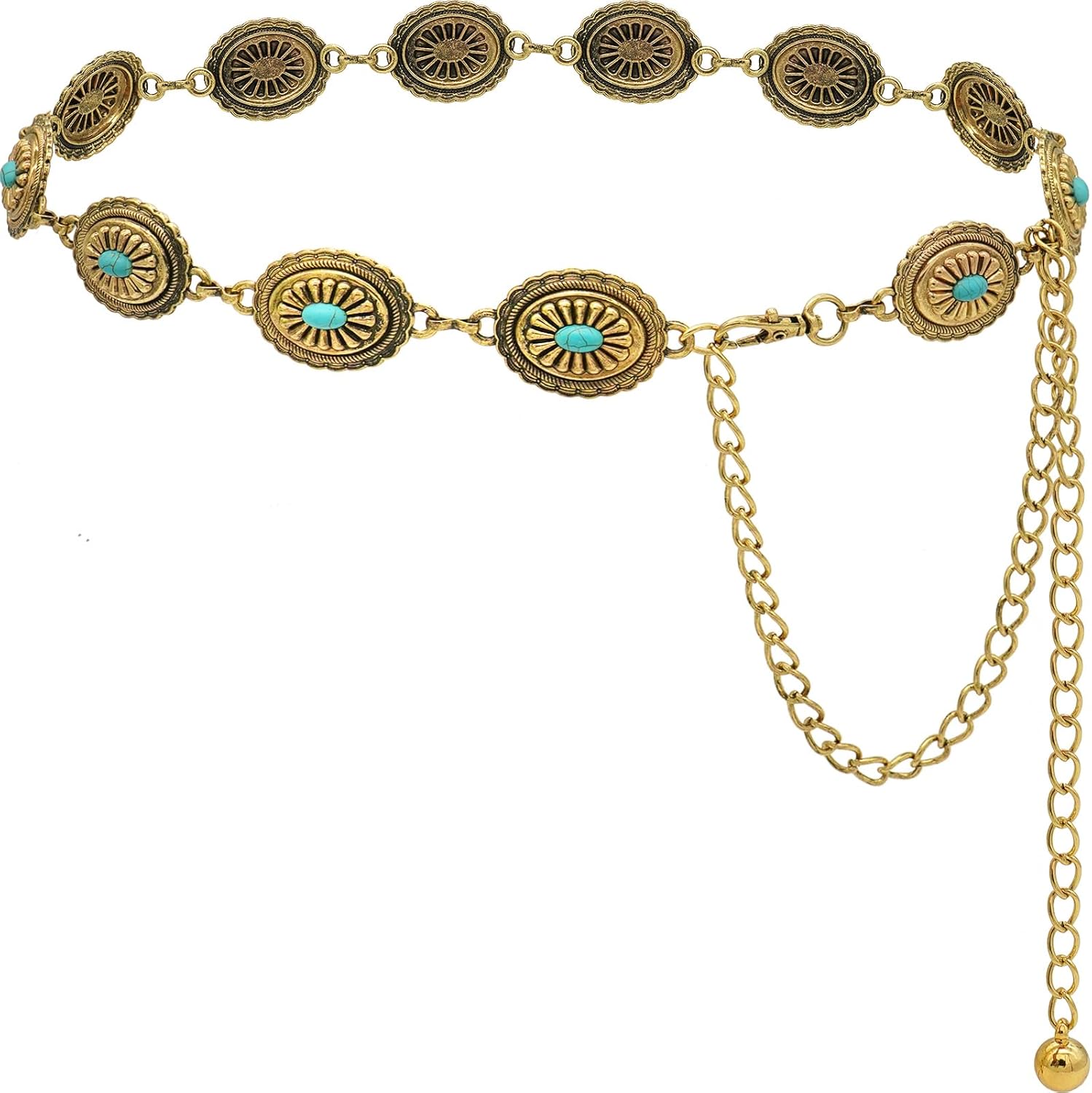 Girls’s Concho Chain Belt Western Cowgirl Metallic Waist Chain Belt for Gown
