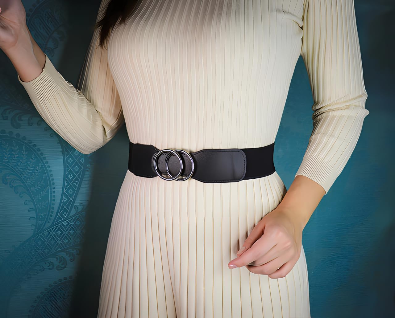Girls’s Elastic Stretch Extensive Waist Belts w Double Rings Gold/Silver Buckle