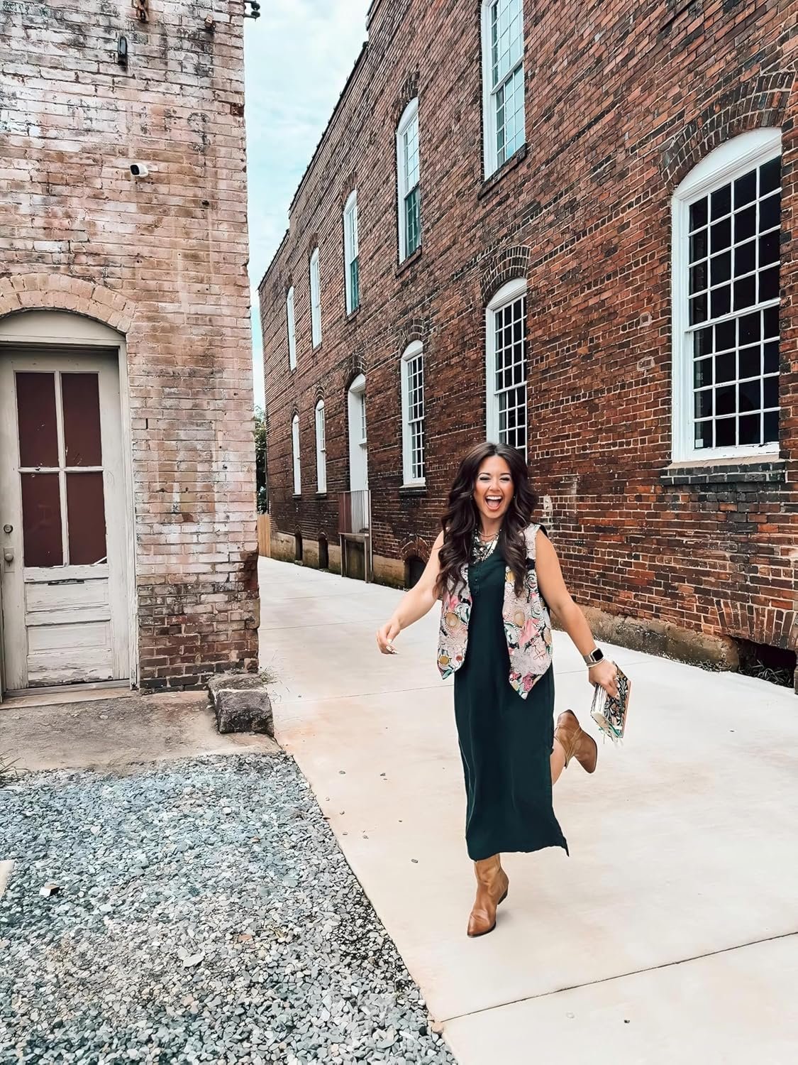 It may be worn alone on heat days and paired with a jean jacket for cooler climate.