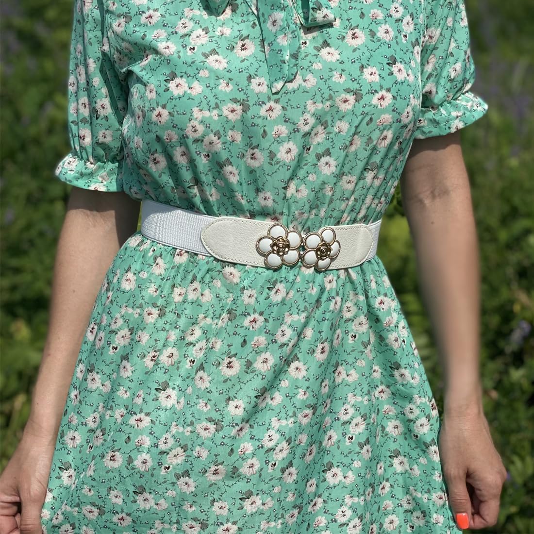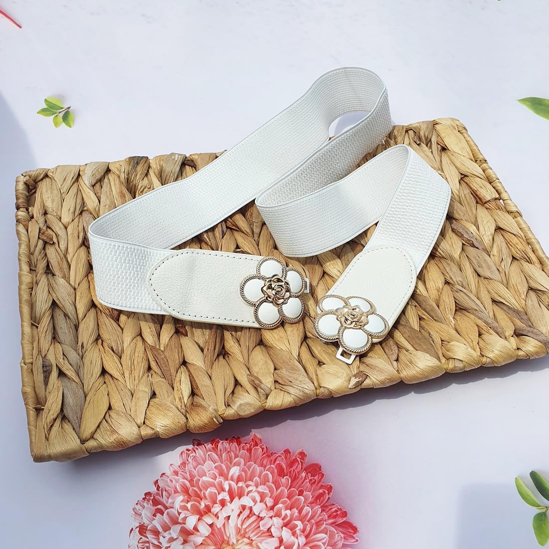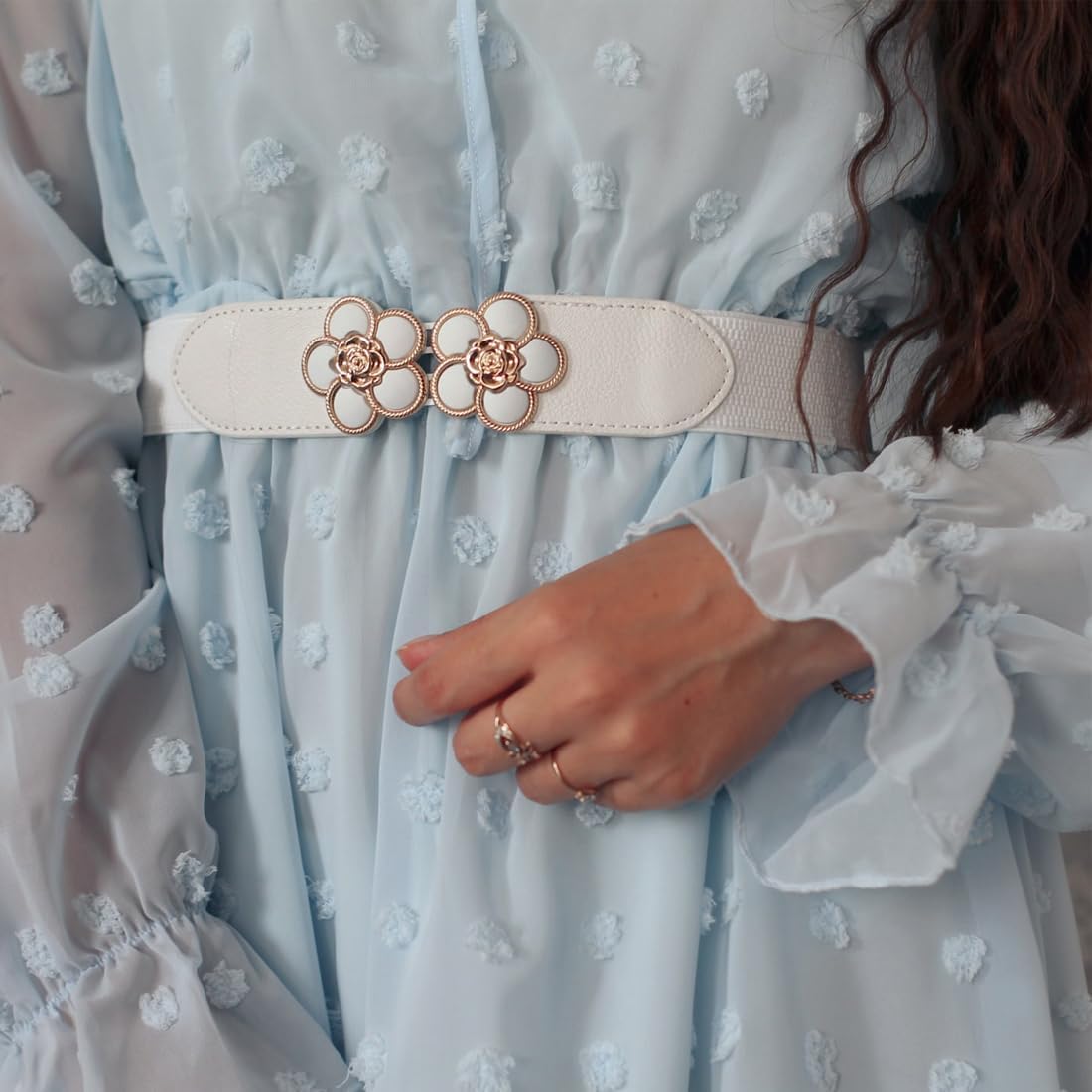 Ladies Retro Elastic Stretchy Metallic Buckle Skinny Waist Belt 1 inch Vast
