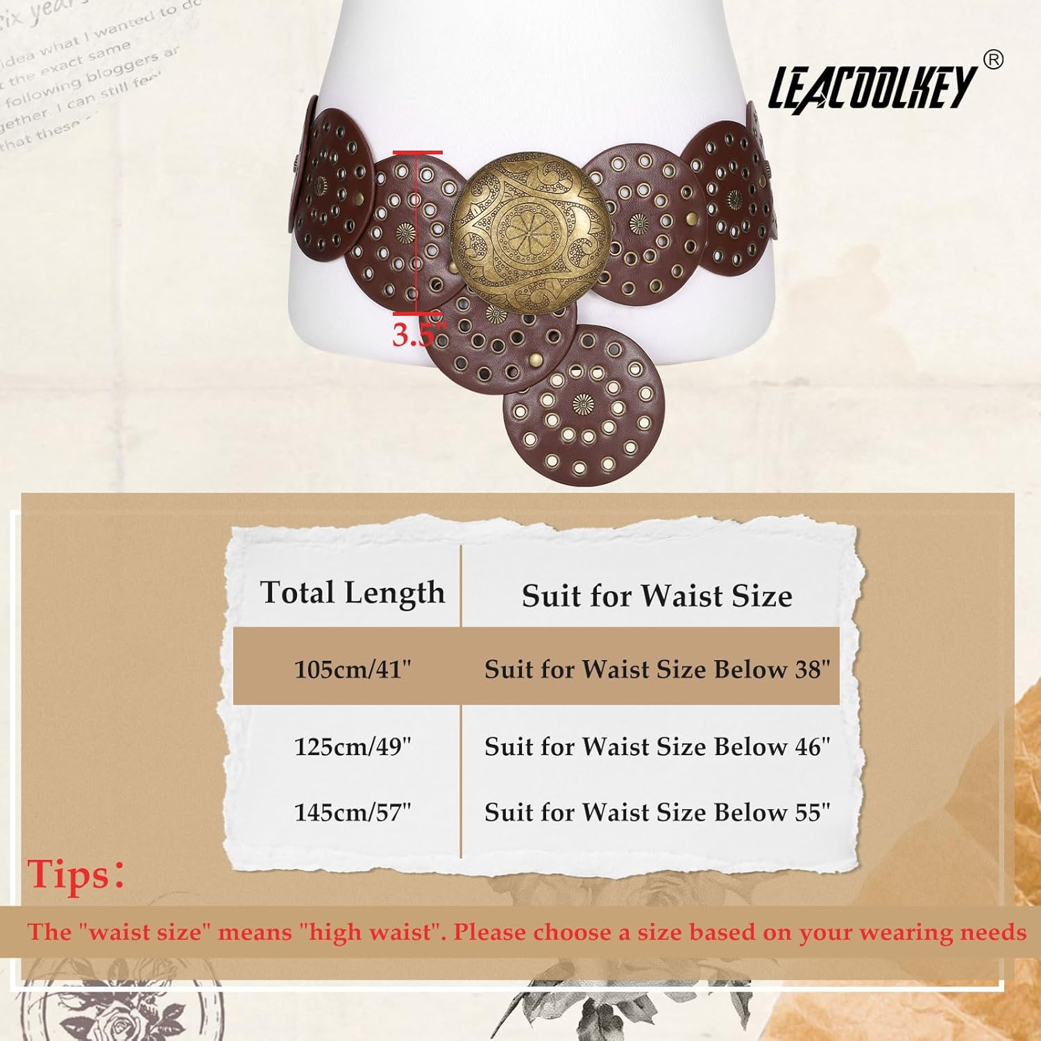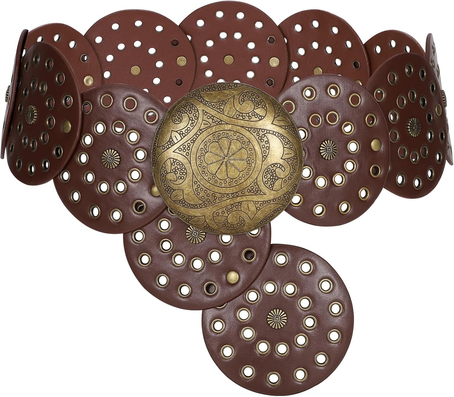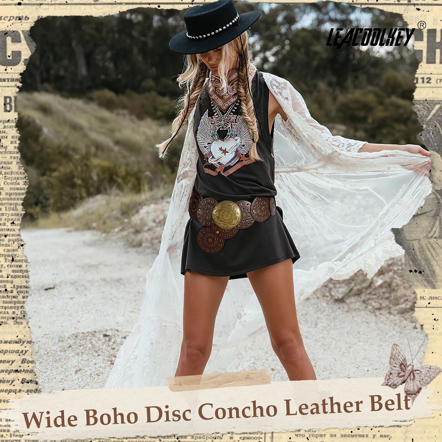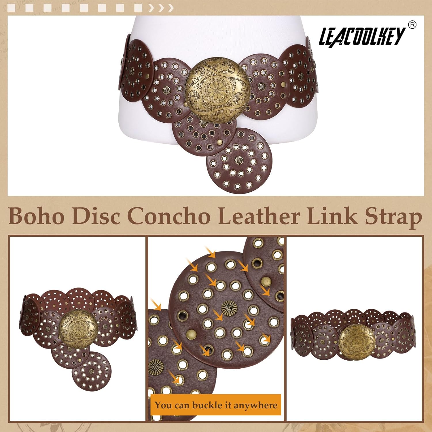 Western Concho Leather-based Belt Boho Disc Waist Belt for Ladies