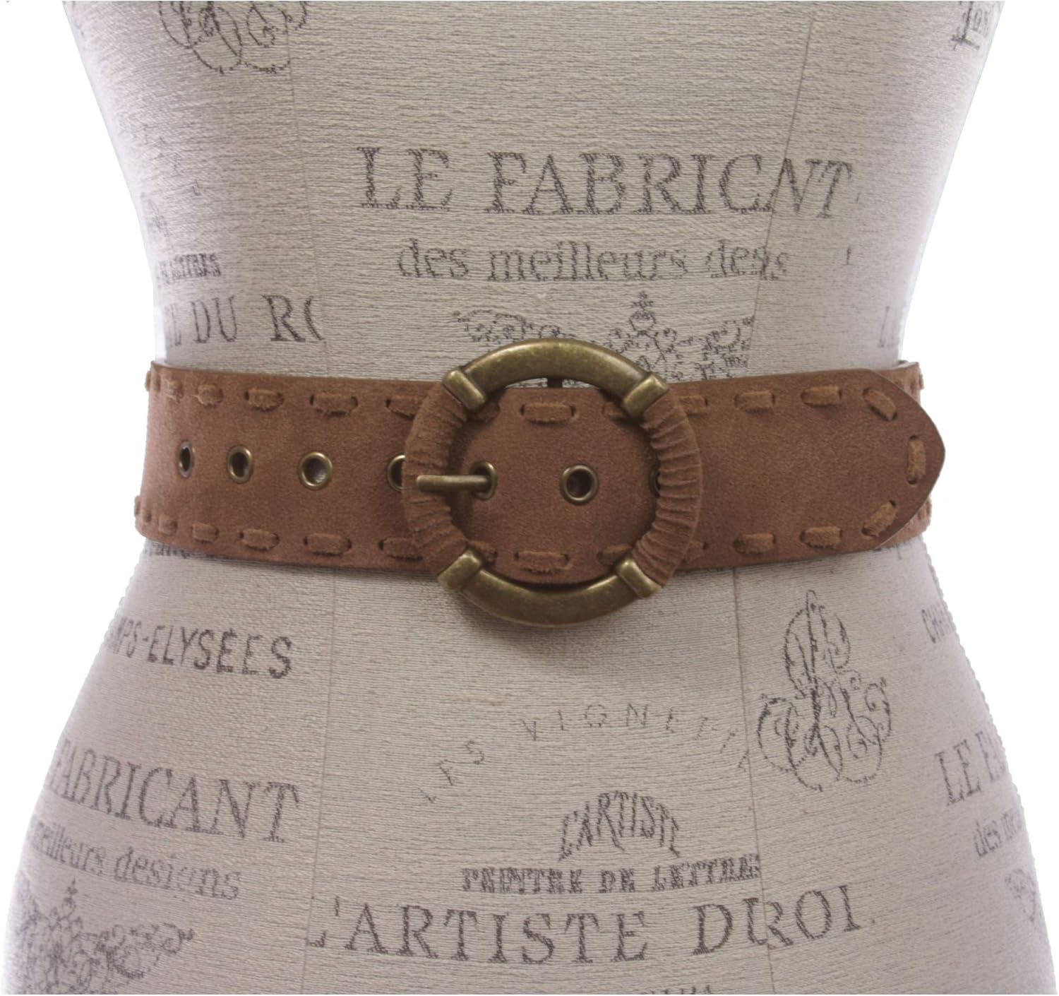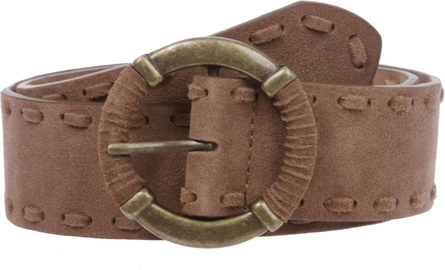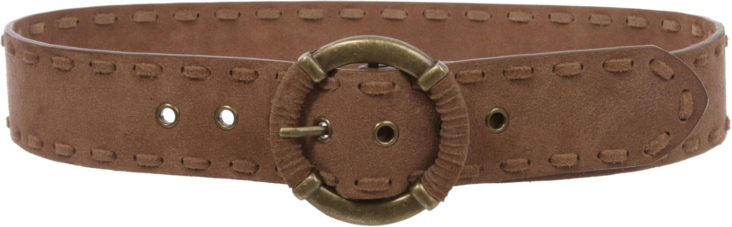 Ladies’s 1 7/8″ Lace Edged Braided Cow Suede Leather-based Spherical Belt