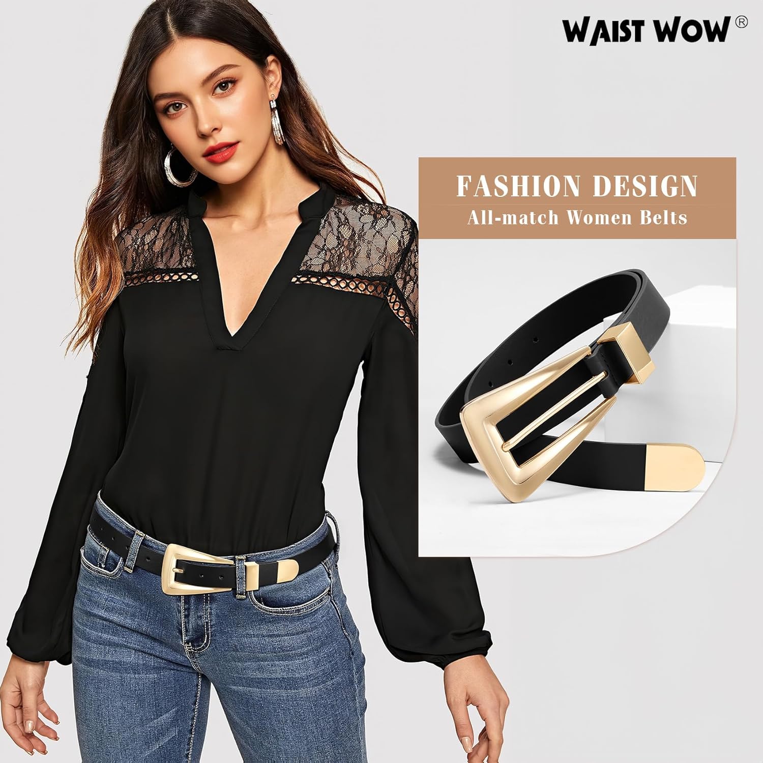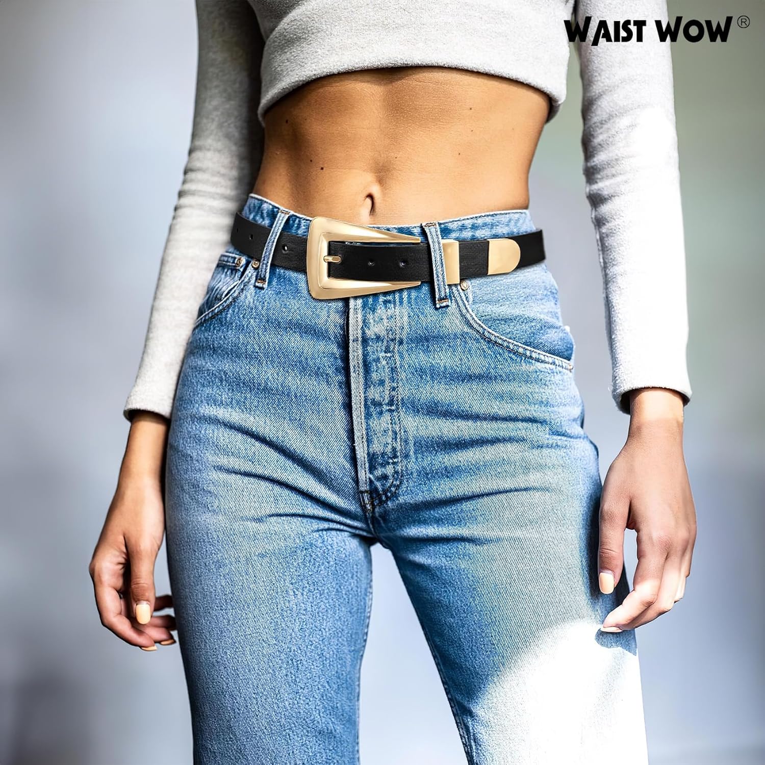 Ladies’s Leather-based Belts for Denims Pants Vogue Leather-based Waist Belt Women Costume Belts with Gold/Silver Buckle