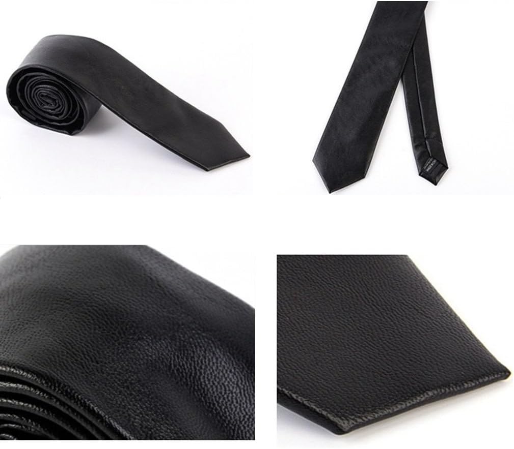 Men’s Skinny Tie Handmade PU Leather Black Narrow Necktie