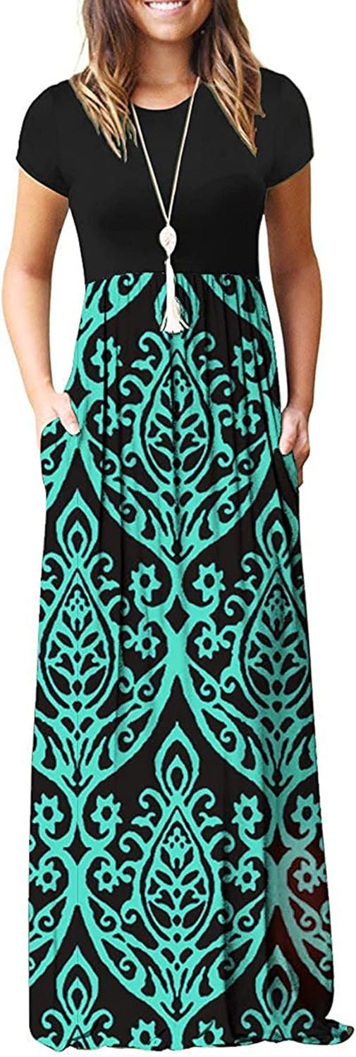 MISFAY Girls’s Brief Sleeve Empire Waist Maxi Clothes Lengthy Clothes with Pockets
