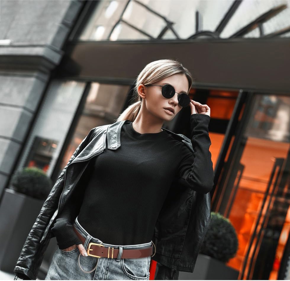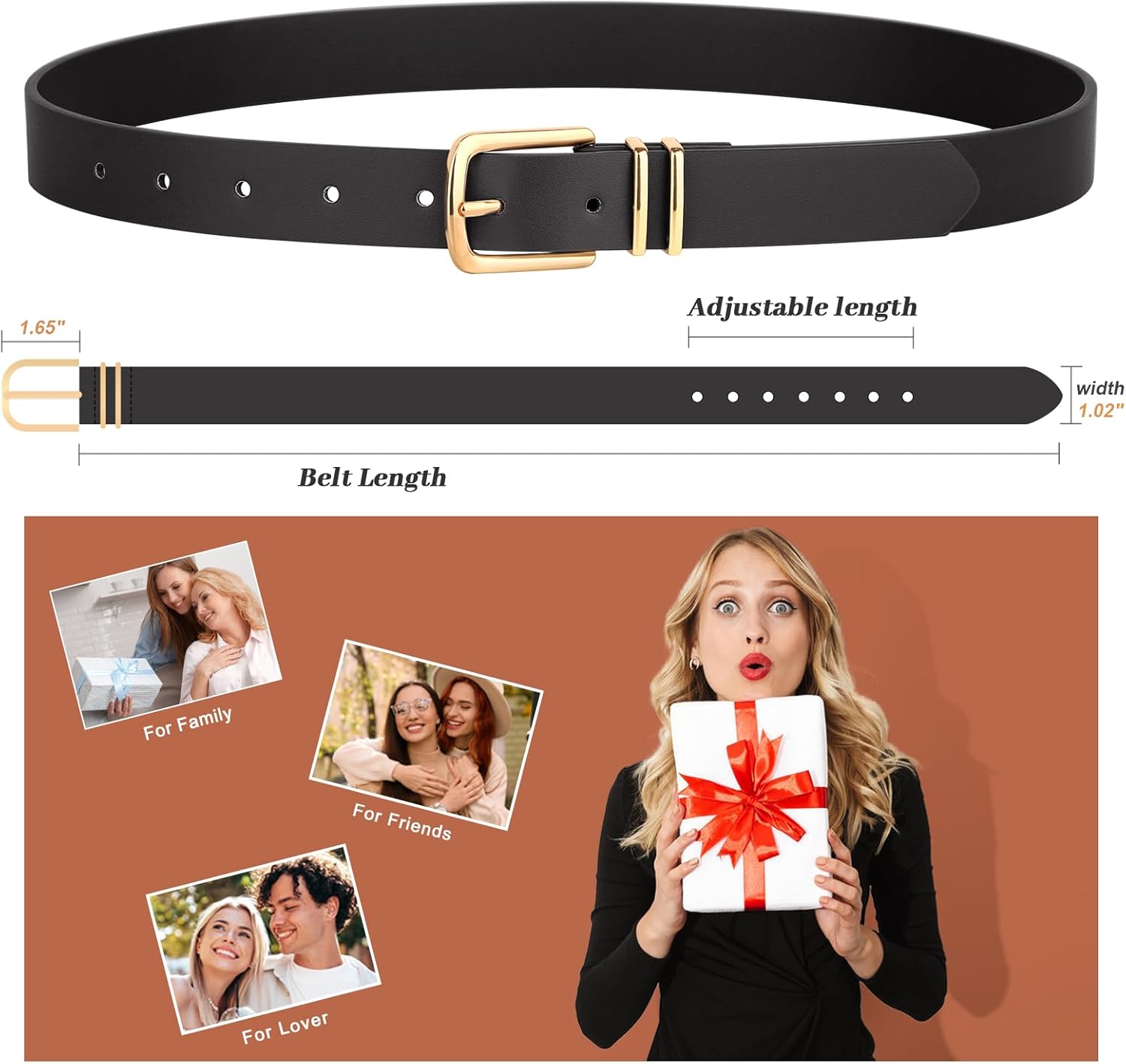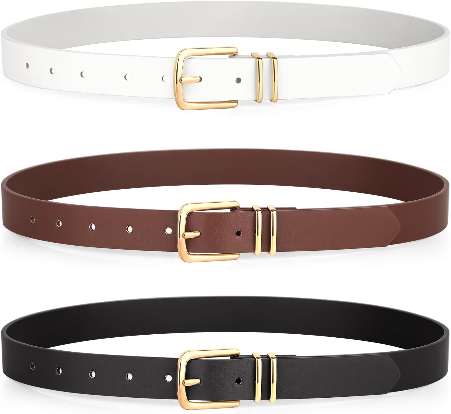 Monoluxe Pack 3 Womens Belts for Denims Pants, Girls Ladies Leather-based Belts with Gold Sliver Buckle