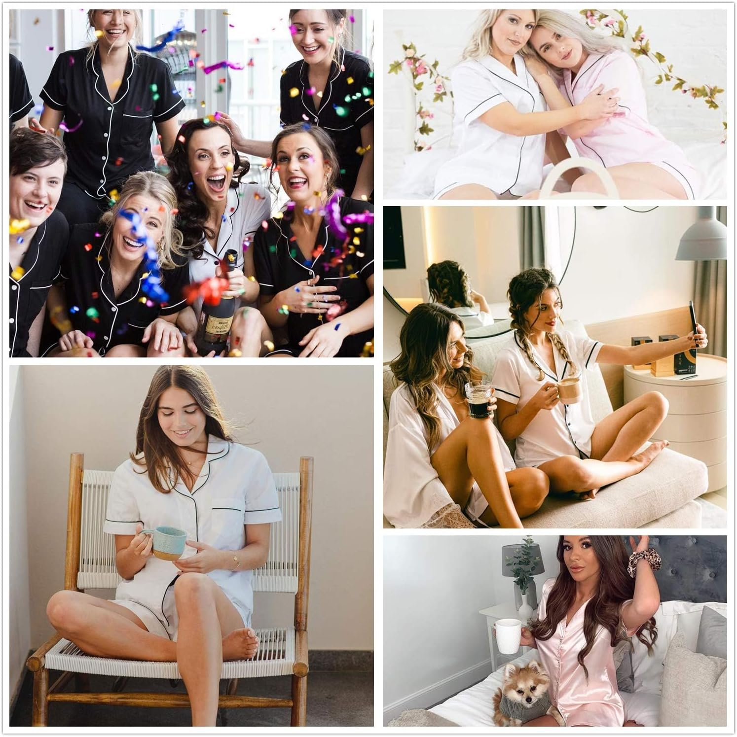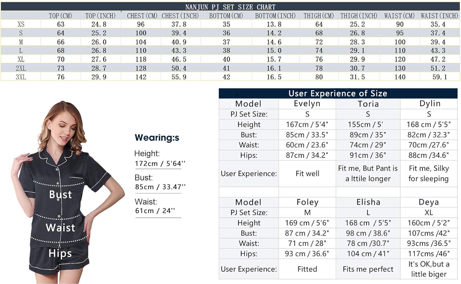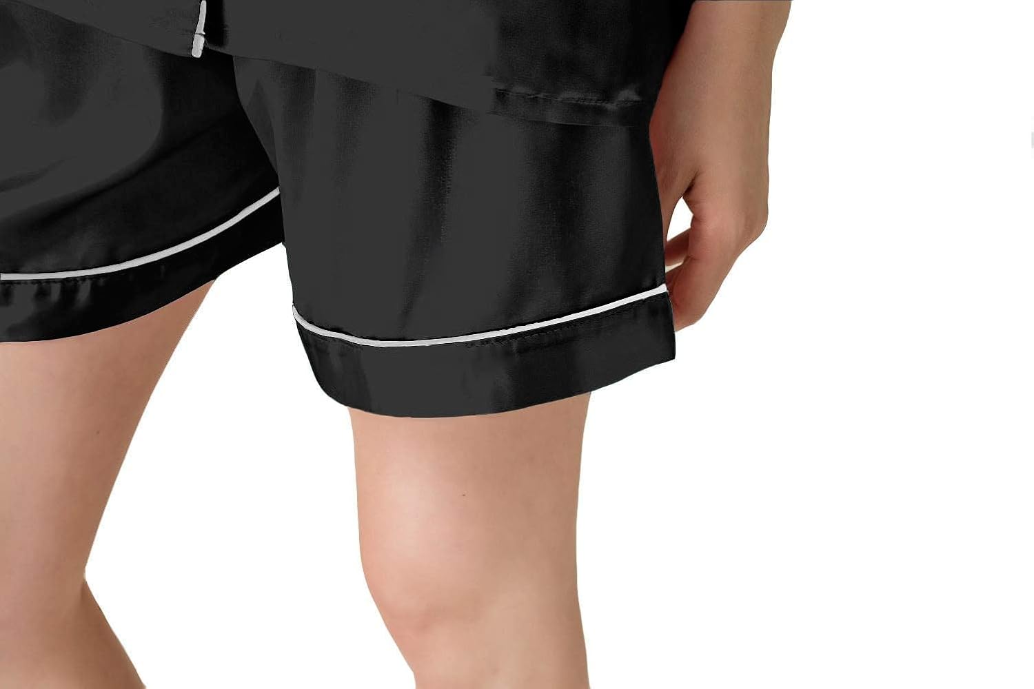 NANJUN Womens Silk Satin Pajamas Short Sleeve Sleepwear Bride Soft Button Down Loungewear 2 Piece Pjs Set XS-3XL