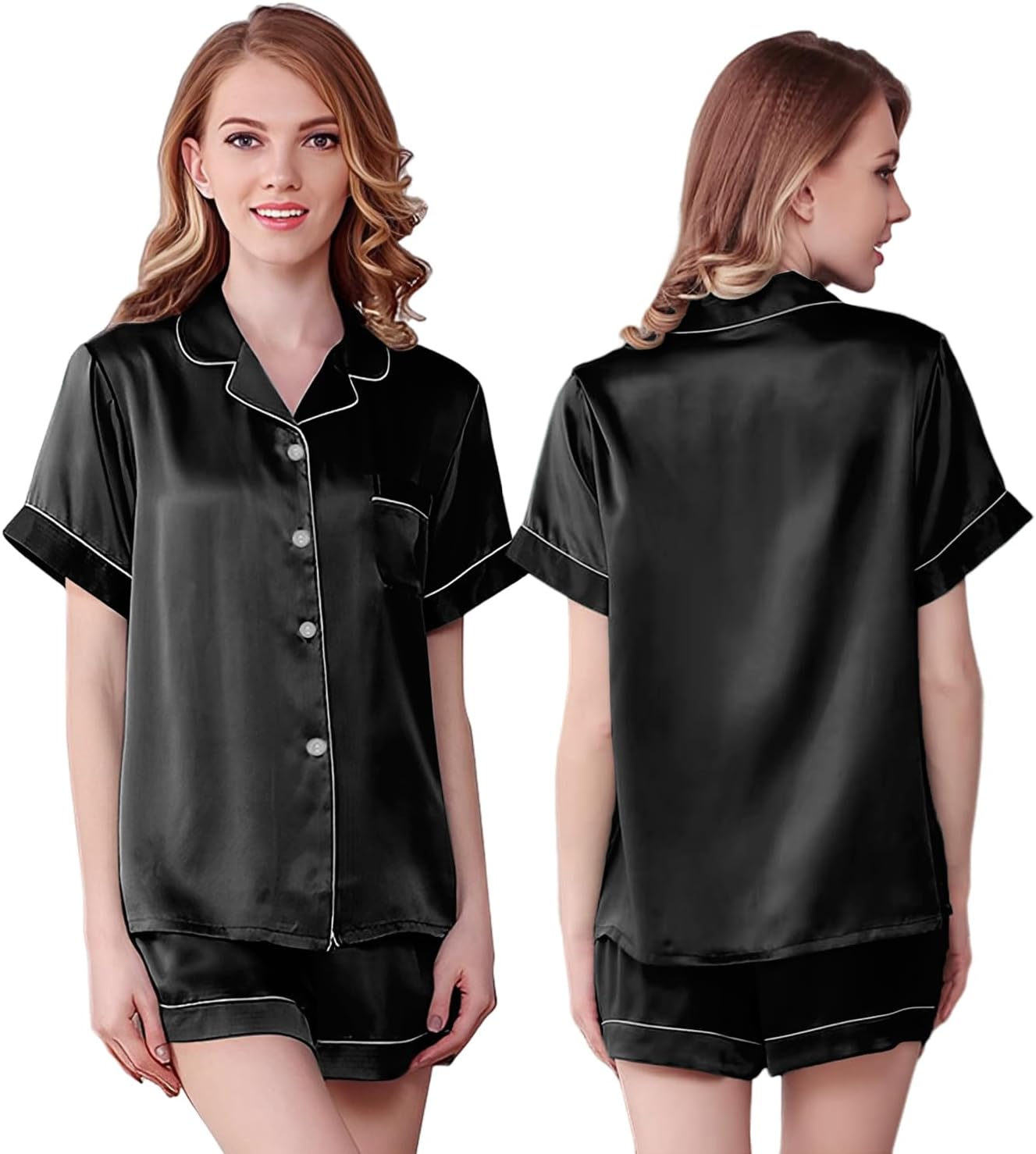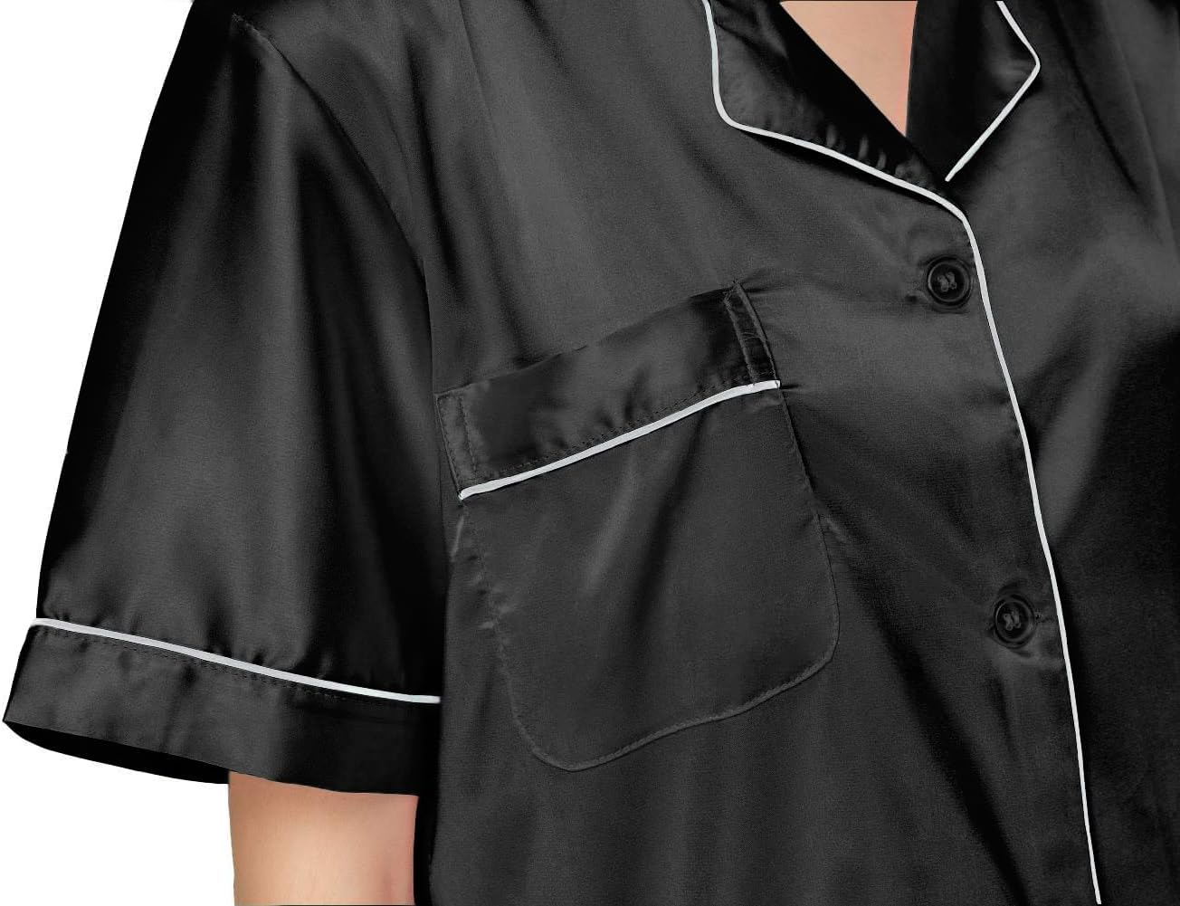 Premium Polyester satin fabric. Ultra soft and comfyShort sleeve sleepwear top and pajama shorts set