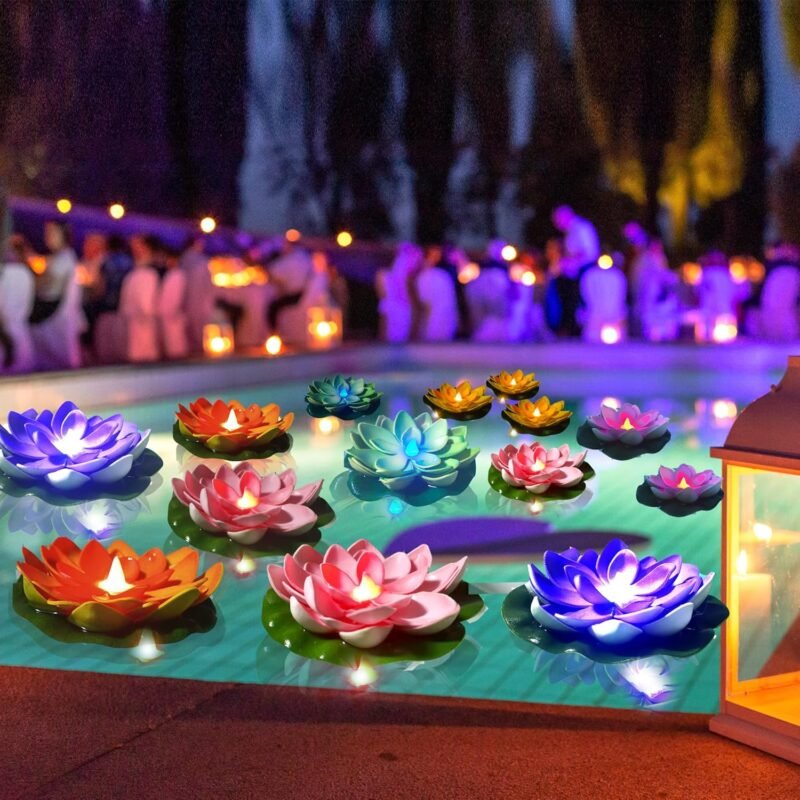 14 PCS Diwali Waterproof Floating Lotus Light – Floating Flower Light Battery Operated Water Activated Muiti-Color RGB Pool Flower Lamp Wedding,Anniversary,Garden Christmas Halloween Decoration