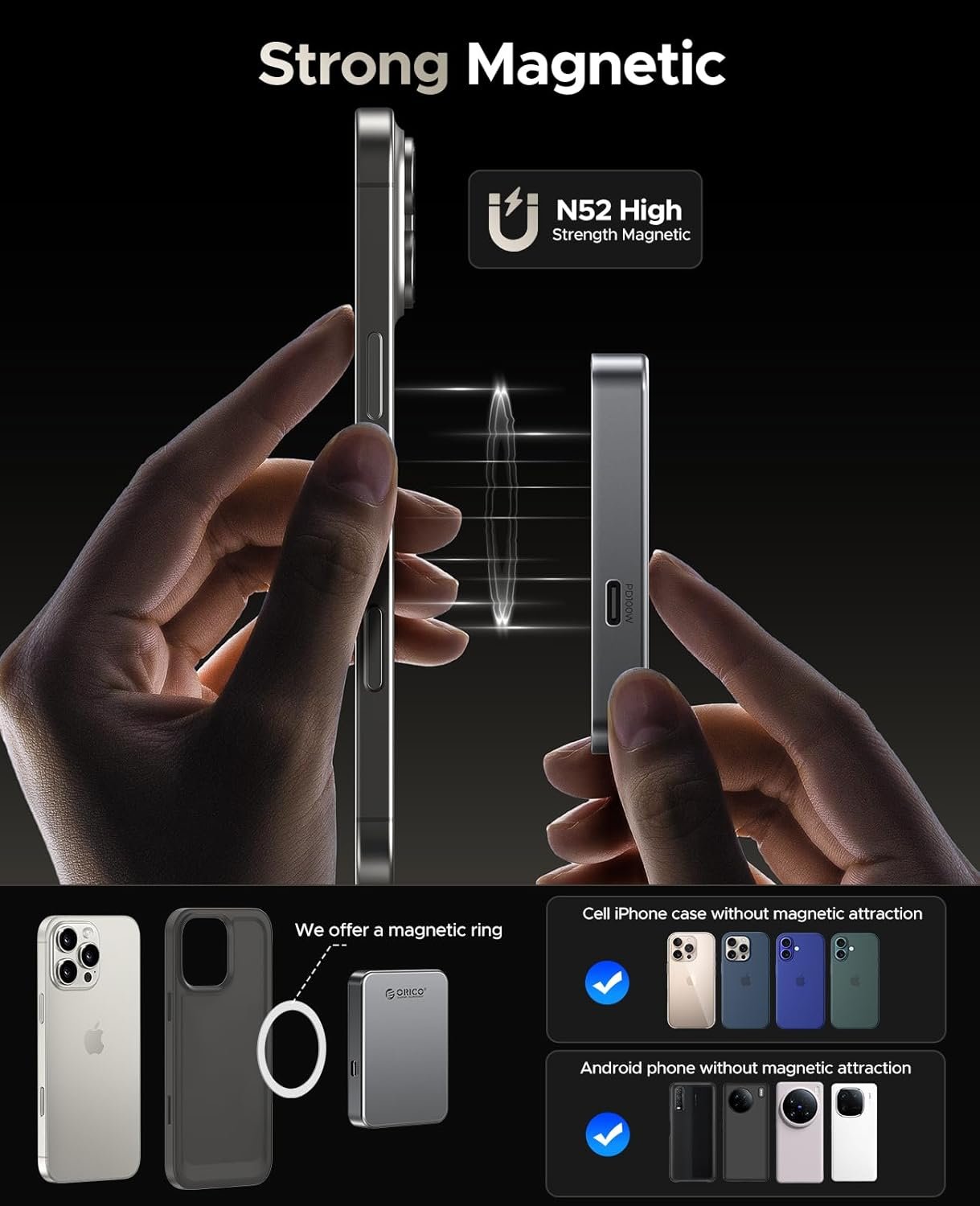 ORICO 1TB Magnetic SSD, PD100W Charging, 4K ProRes HDR, 1000MB/s USB 3.2, Portable External Drive for iPhone 16/15, Laptops, Tablets – Aluminum Alloy, Drop Resistant – K10
