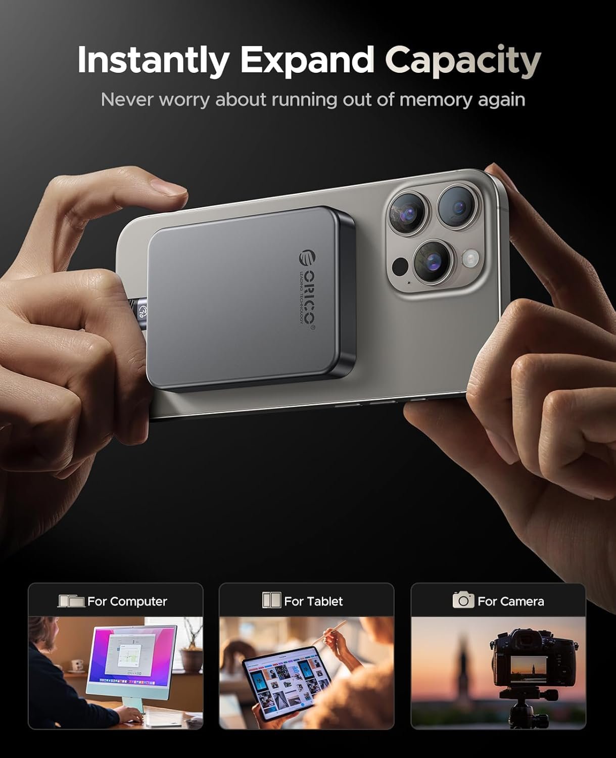 Instant Memory Expansion: Plug and play with any compatible device to instantly expand storage. Ideal for photographers, videographers, and anyone needing extra space for large files(Note: For iPhone 14 and earlier models, you can choose the ORICO LC10 Lightning adapter. The adapters from other brands are not supported)