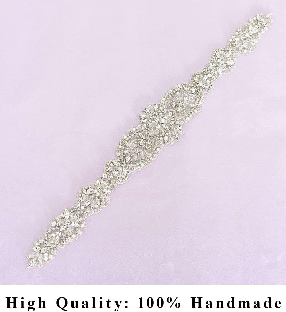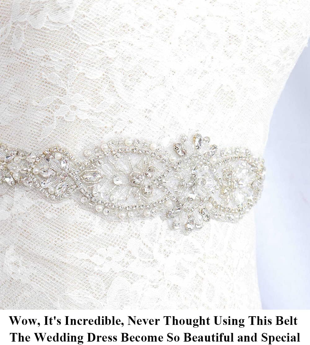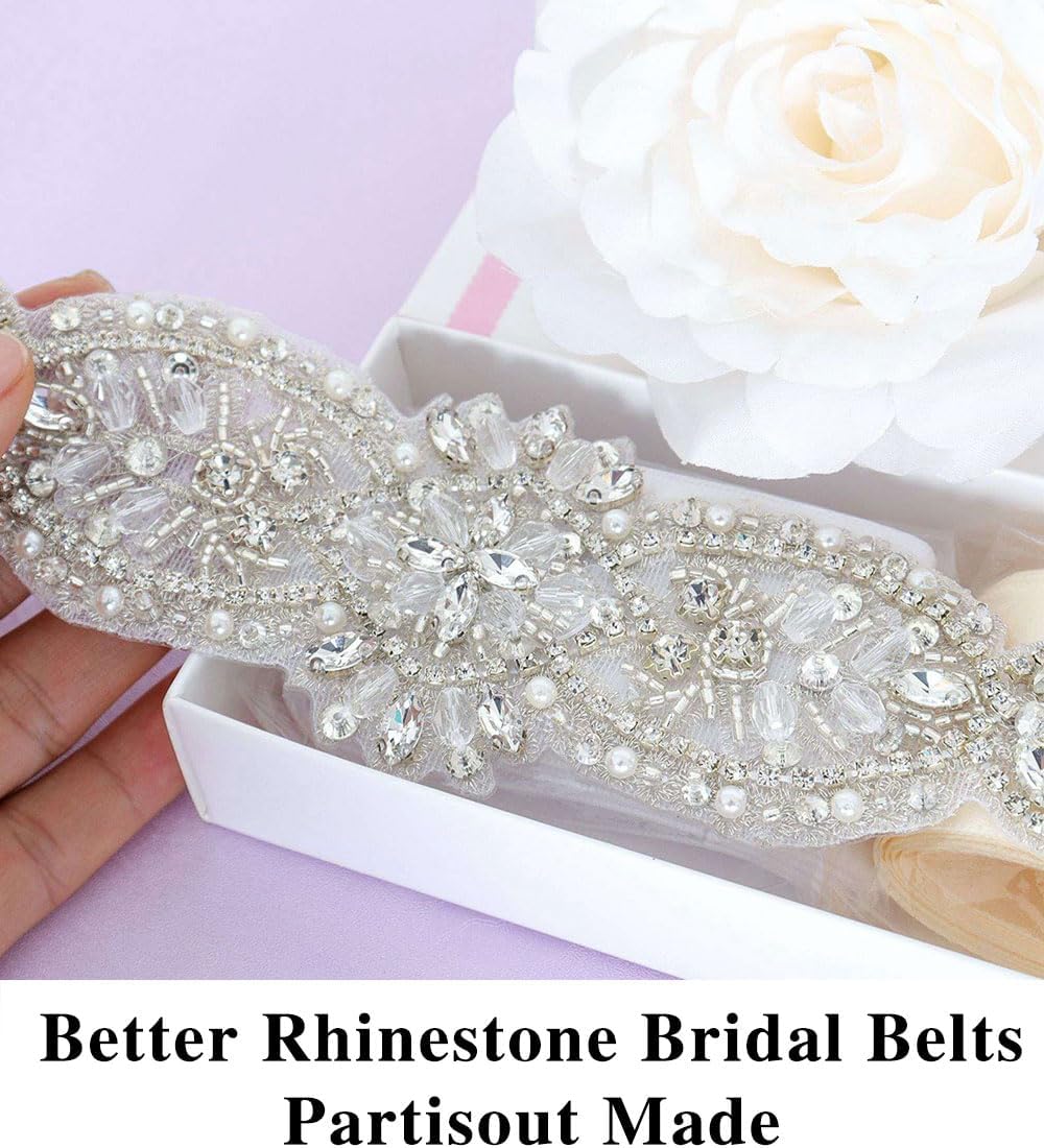 Partisout Rhinestone Bridal Belt – Silver Wedding ceremony Belt for Bride Gown with Rhinestones