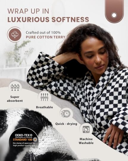 Terrycloth Bathrobe for Girls – Terry Robes for Girls and Males – Girls’s Day – 100% Cotton Checkered Bathrobe