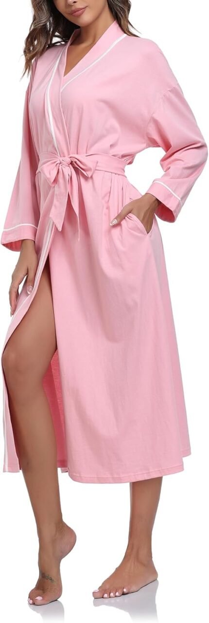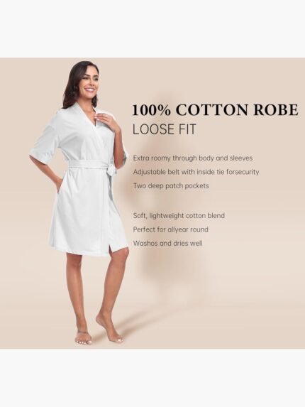 EA’S SECRET Girls’s 100% Cotton Summer time Brief Robes Light-weight Spa Gown Comfortable Knit Kimono Bathrobes with Pockets