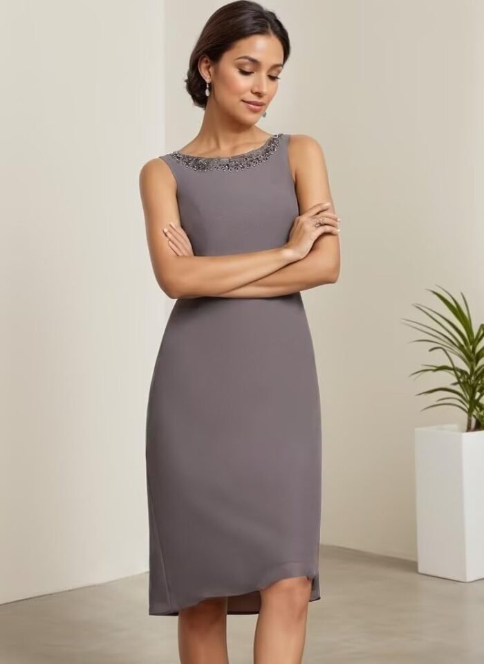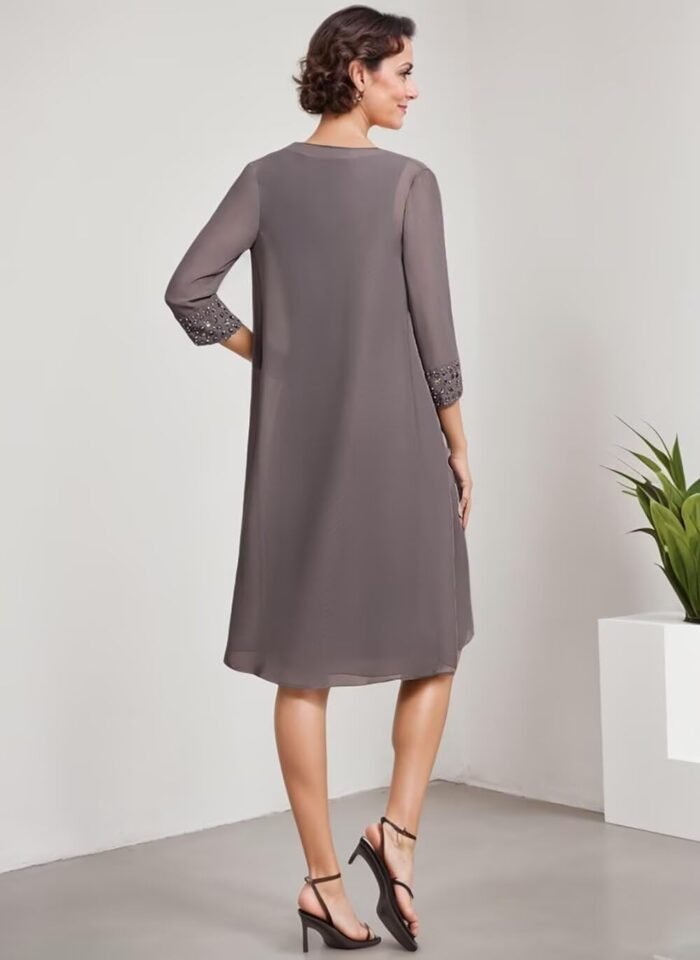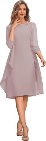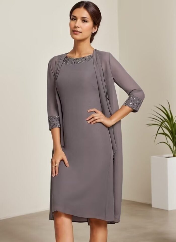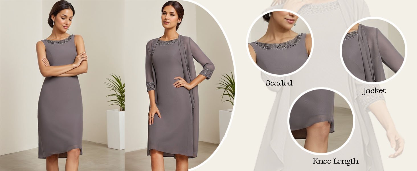 Chiffom mom of the bride attire with jackets Options with chiffon beaded,3/4 lengthy sleeve,scoop neck,a line,knee size,attractive sufficient to put on in any special day