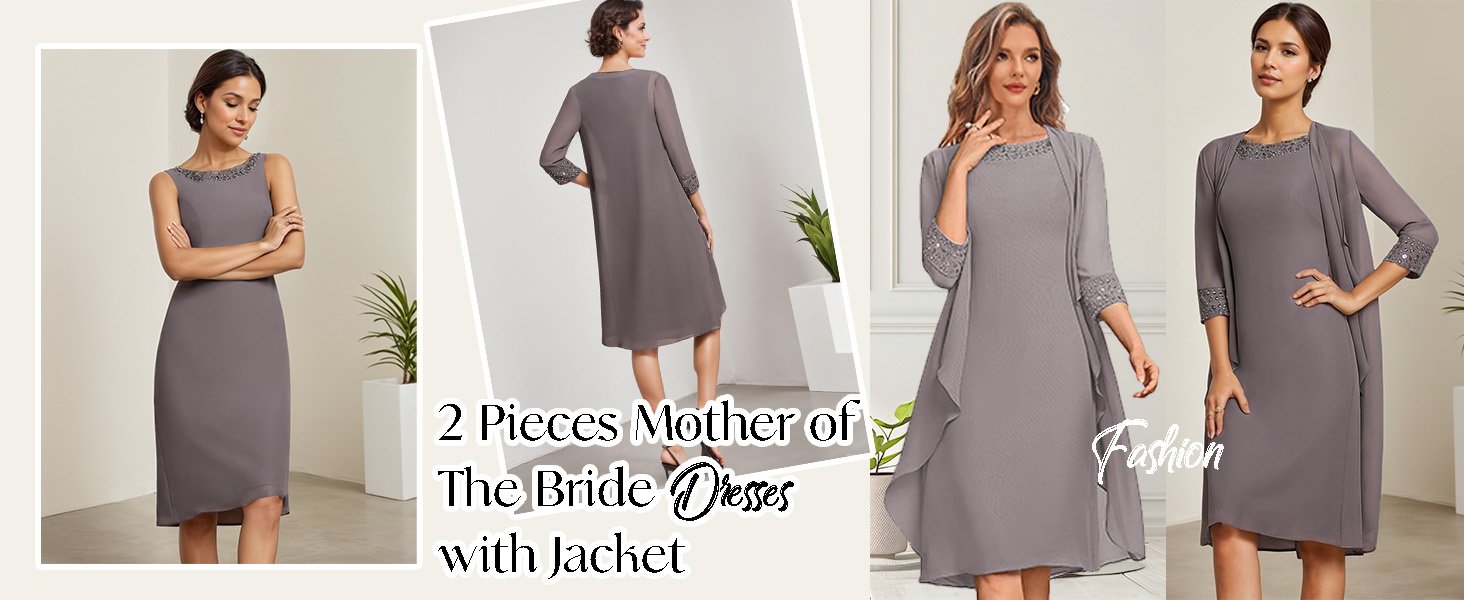 Chiffon mother of the bride dresses for women,formal dresses for mother of the bride dresses,2 pieces mother of the bride dress with sleeves,short mother of the grrom dresses for women,short grandmother of the bride dresses with jackets,formal evening dresses for women