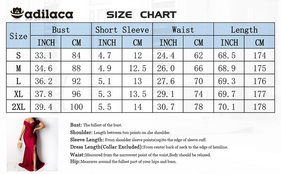 A ADILACA Women Sexy Short Sleeved V Neck Off The Shoulder High Slit Elegant Evening Gown Bodycon Maxi Dress