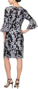 Elevate your wardrobe with the Alex Evenings Women’s Short Shift Cocktail Gown with Bell Sleeves. This enchanting dress features 3D floral embroidery throughout, adding a delicate and feminine touch that’s perfect for weddings, special occasions, or an elegant night out. The timeless sheath silhouette flatters your figure, while the soft and stretchy embroidery ensures comfort and ease of movement. The bell sleeves add a trendy and sophisticated flair, making this dress a versatile addition to any fashion-forward wardrobe. Step out in confidence and style with this stunning cocktail gown, designed to make every moment memorable.