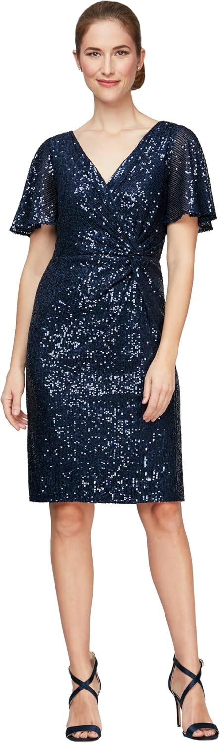 Sparkling sequins dazzle on this elegant flutter sleeve cocktail dress – perfect for any occasion! Pair with your favorite heel for a finished look.