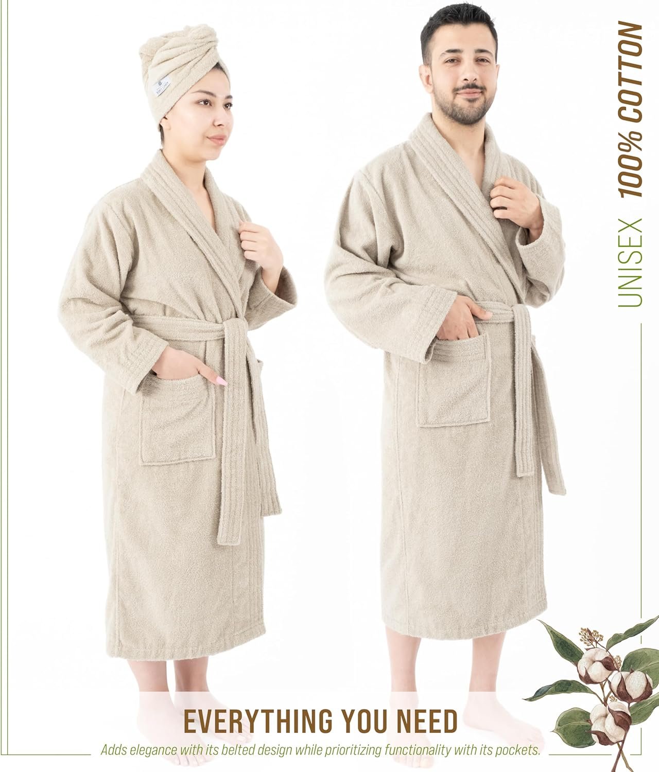 American Comfortable Linen 100% Cotton Robes for Ladies and Males, Comfortable Light-weight Fast Dry Unisex Couple Turkish Bathrobes