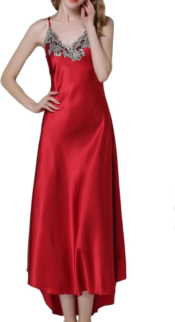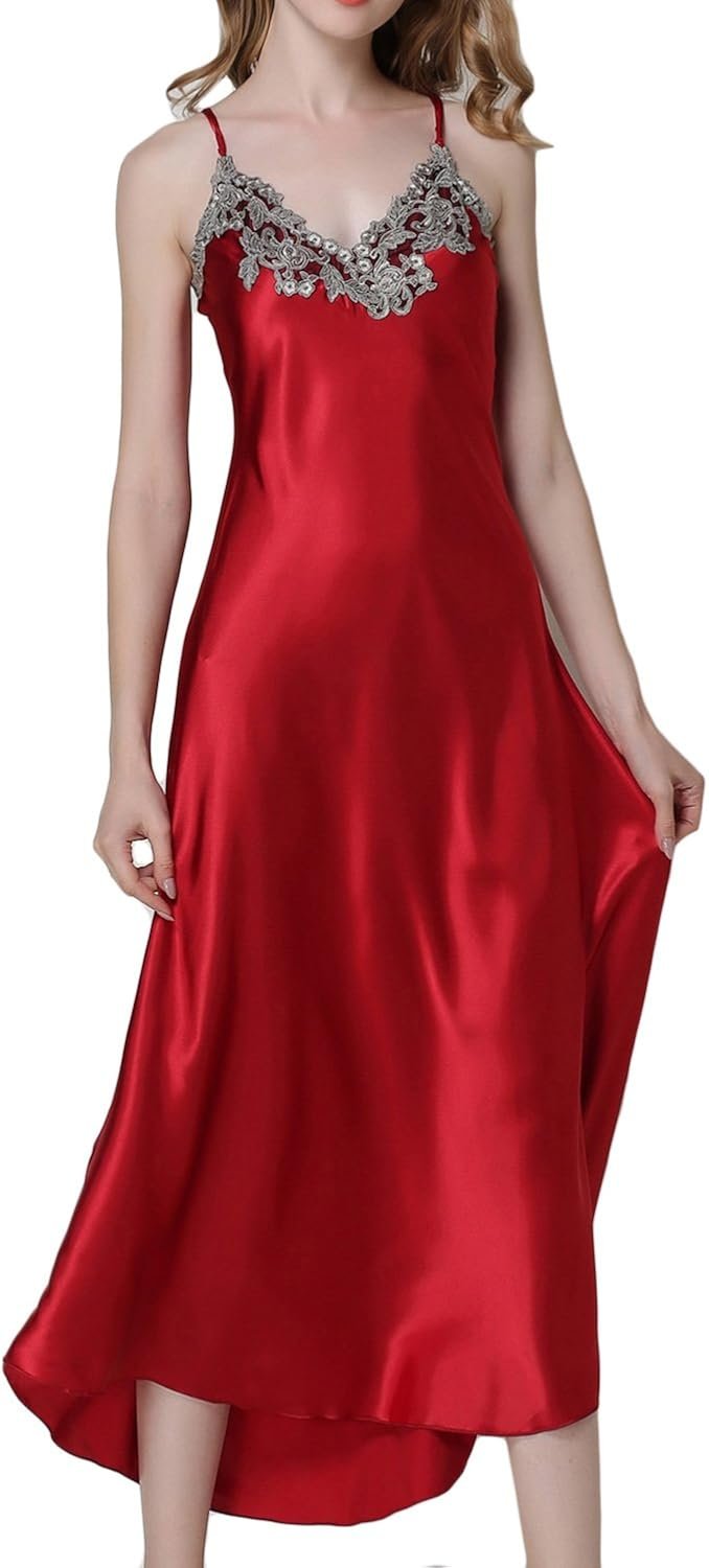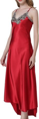 ASHER FASHION Satin Nightgowns for Girls Lengthy Silk Nightdress Classic Lace Chemise Maxi Sleepwear