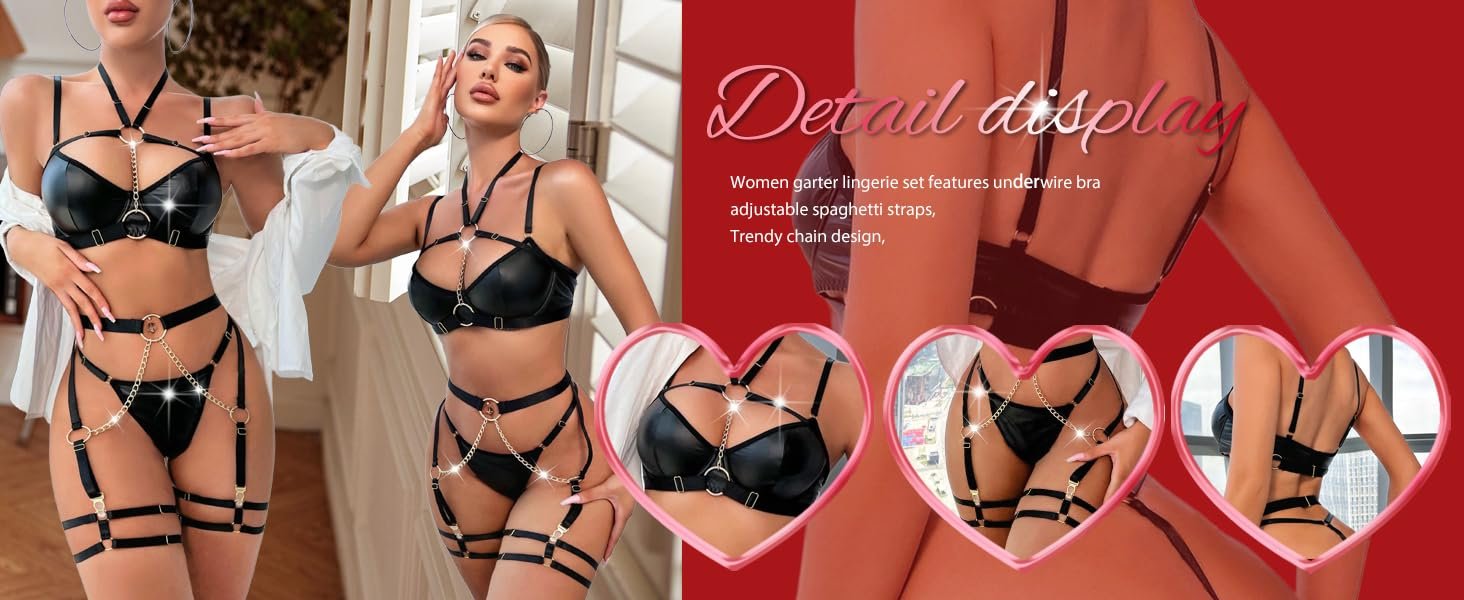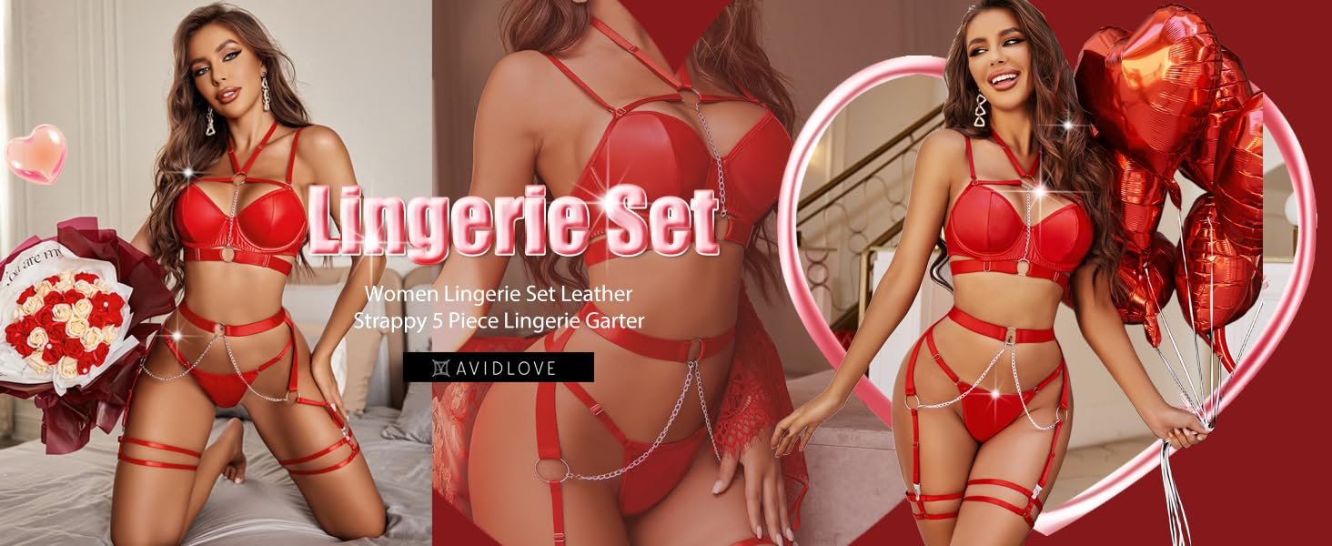 Avidlove Leather Lingerie Set for Women Sexy Strappy Lingerie Garter