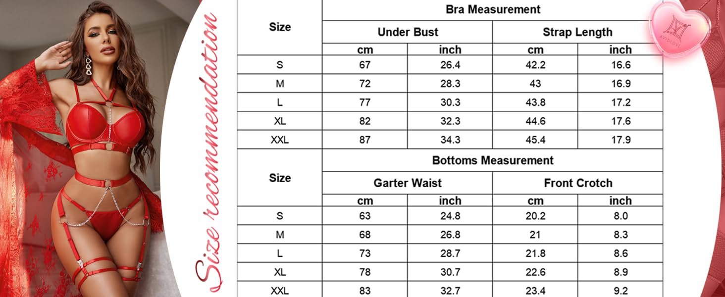 Avidlove Lingerie Set for Women Sexy Strappy 5 Piece Lingerie Garter with Underwire Push Up Bra and Chain