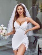 Avidlove Women Lingerie Lace Nightgown Chemise Spaghetti Strap Babydoll Modal Sleepwear V-Neck Full Slip Side Slit Nightwear