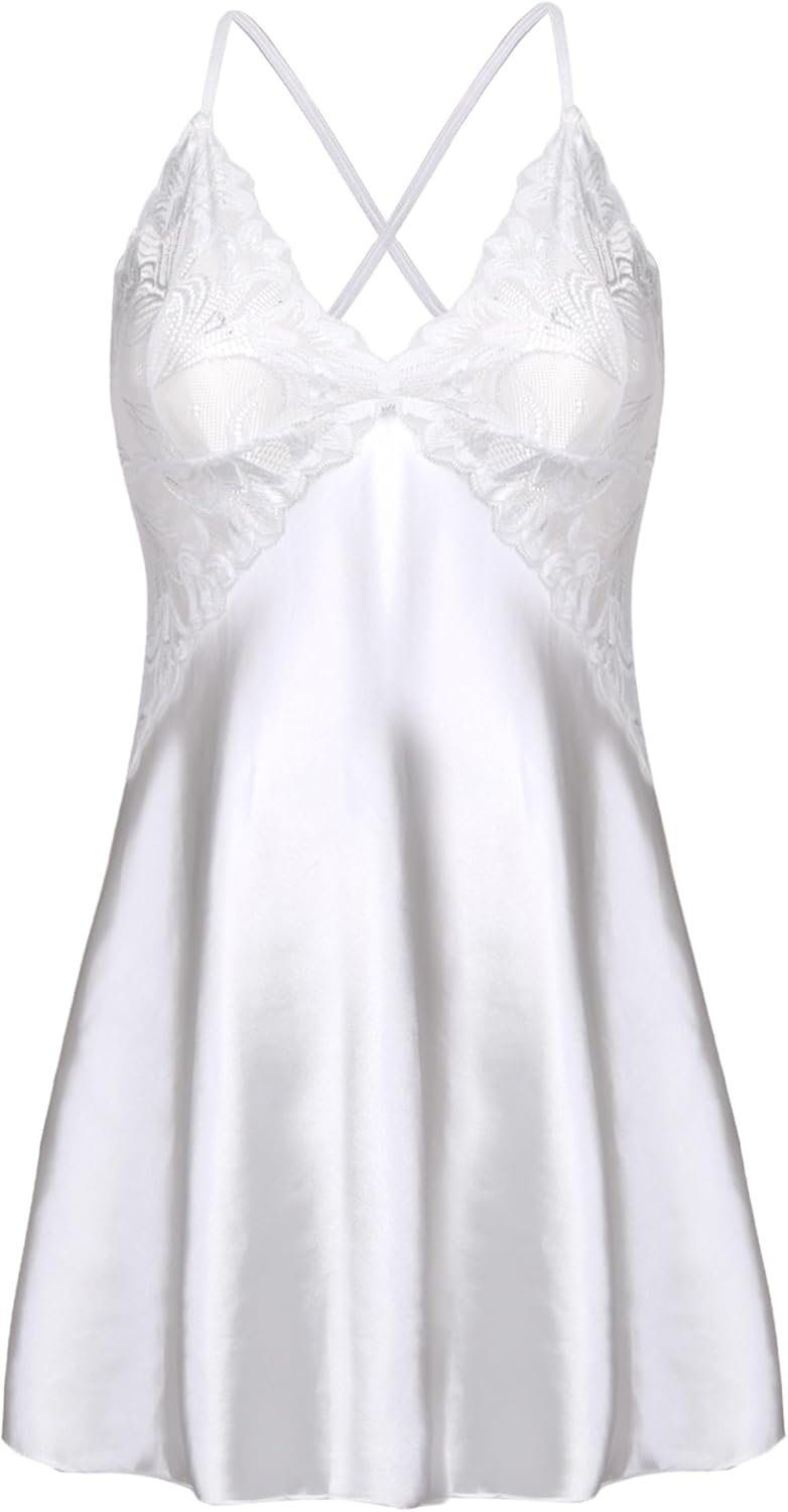Avidlove Women Lingerie V Neck Nightwear Satin Sleepwear Lace Chemise Mini Teddy