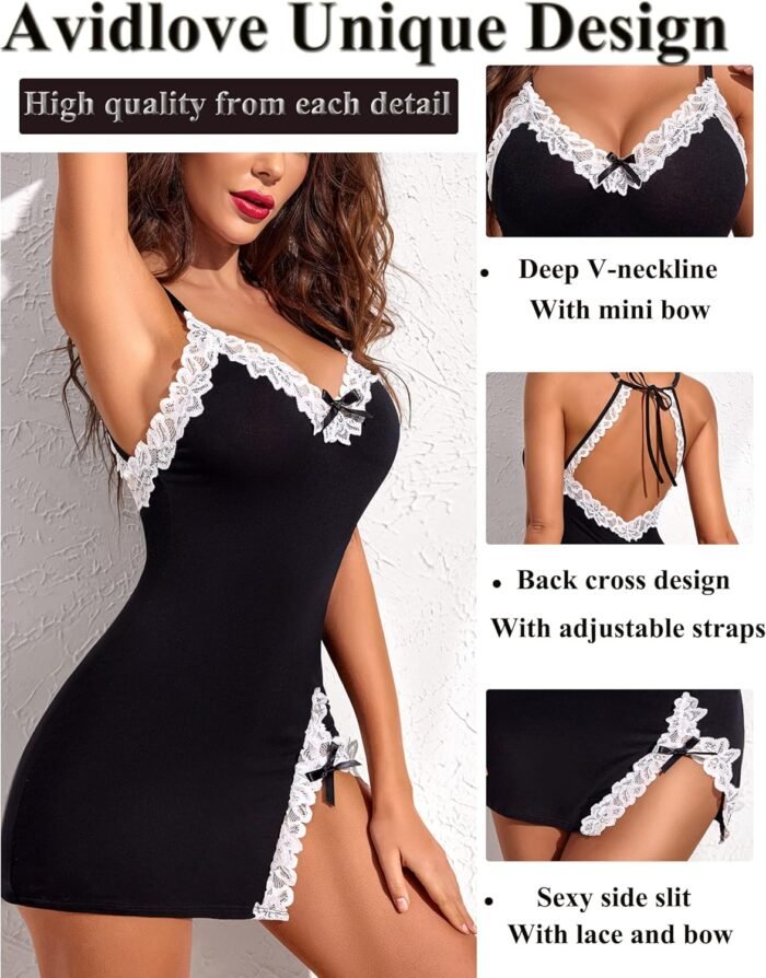 Avidlove Womens Lingerie Sexy Lace Babydoll V Neck Sleepwear Cotton Nightgowns for Women Chemise