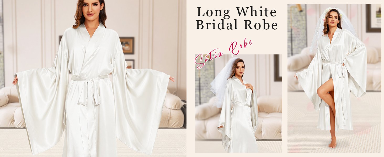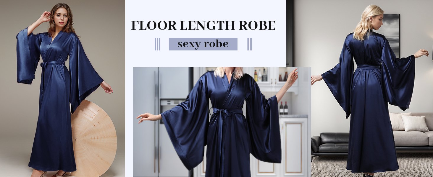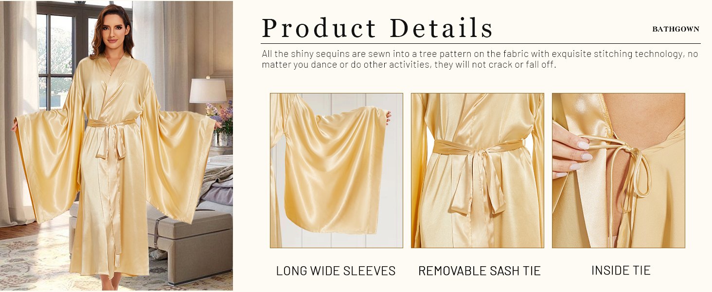 This satin robes features oblique v-neck design, long wide sleeves, ankle length or floor length, kimono style, which is elegant and luxurious.