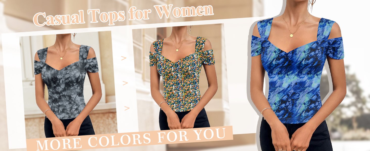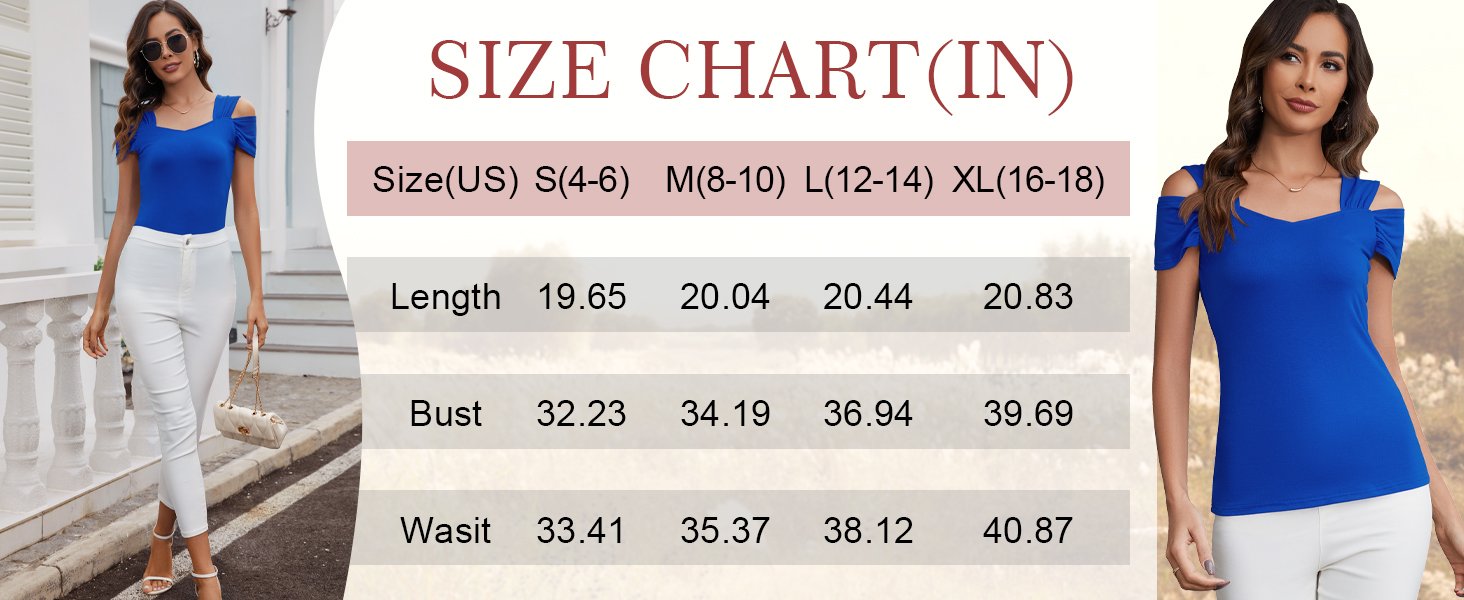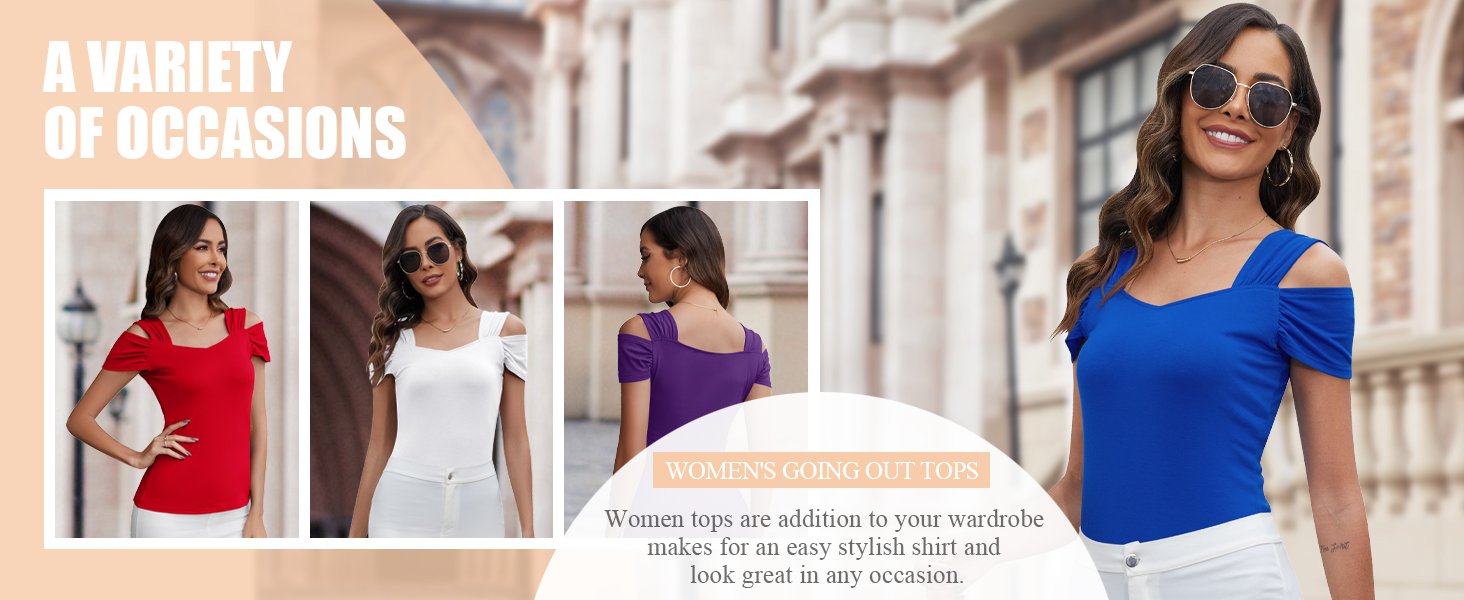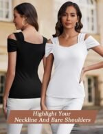 Details of The Cold Shoulder Shirts Night Out Dating Tops: Material: 65% Polyester, 30% Cotton, 5% Spandex. These cold shoulder tops for women offer a stretchy,light, and breathable fabric.The comfortable and soft material ensures a relaxed and loose fit, making it an ideal choice for summer attire.