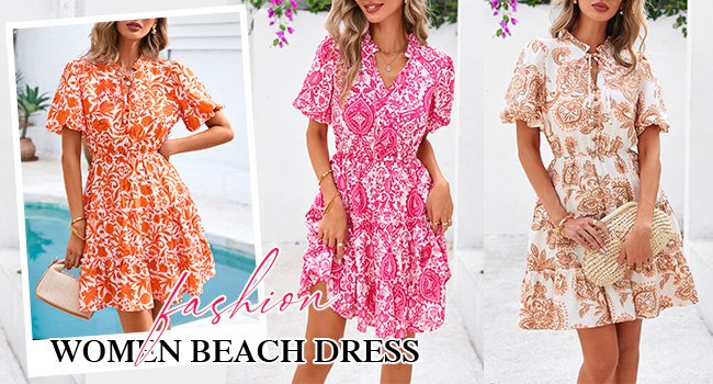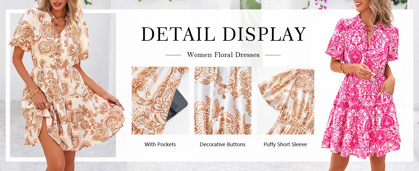 The video showcases the product in use.The video guides you through product setup.The video compares multiple products.The video shows the product being unpacked. Sun Dresses for Women Summer Swing Floral Dresses Merchant Video