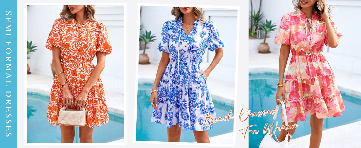 Informal Summer season Attire For Girls 2025 BeachFloral Quick Sleeve Flowy Attire TrendyBlue White Commencement Attire For WomenGirls Easter Attire For WomenBeach Trip Garments For Girls Vacation Journey